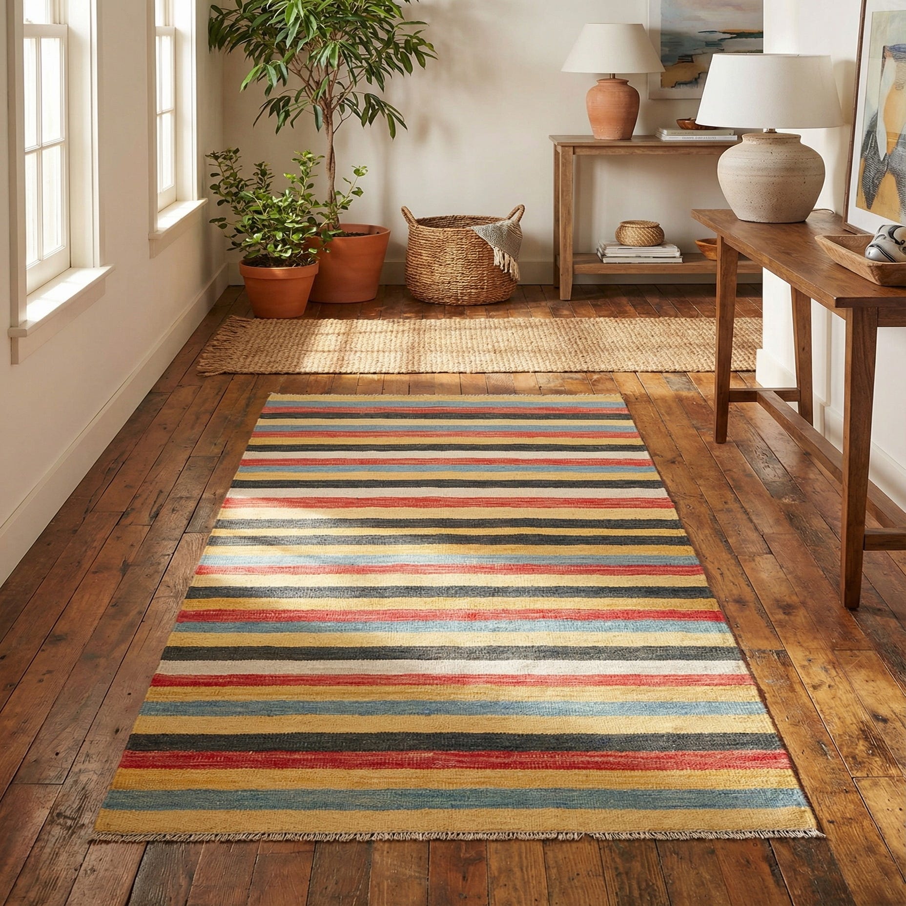 3' 3 x 6' 7 Hand Woven Kilim Maymana Wool Runner Rug