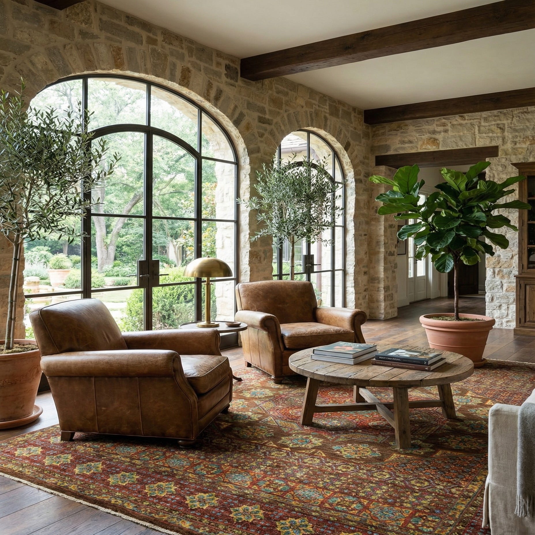 Primary color is Brown. Colors in this rug include: Brown, Green, Red, Beige, Orange.