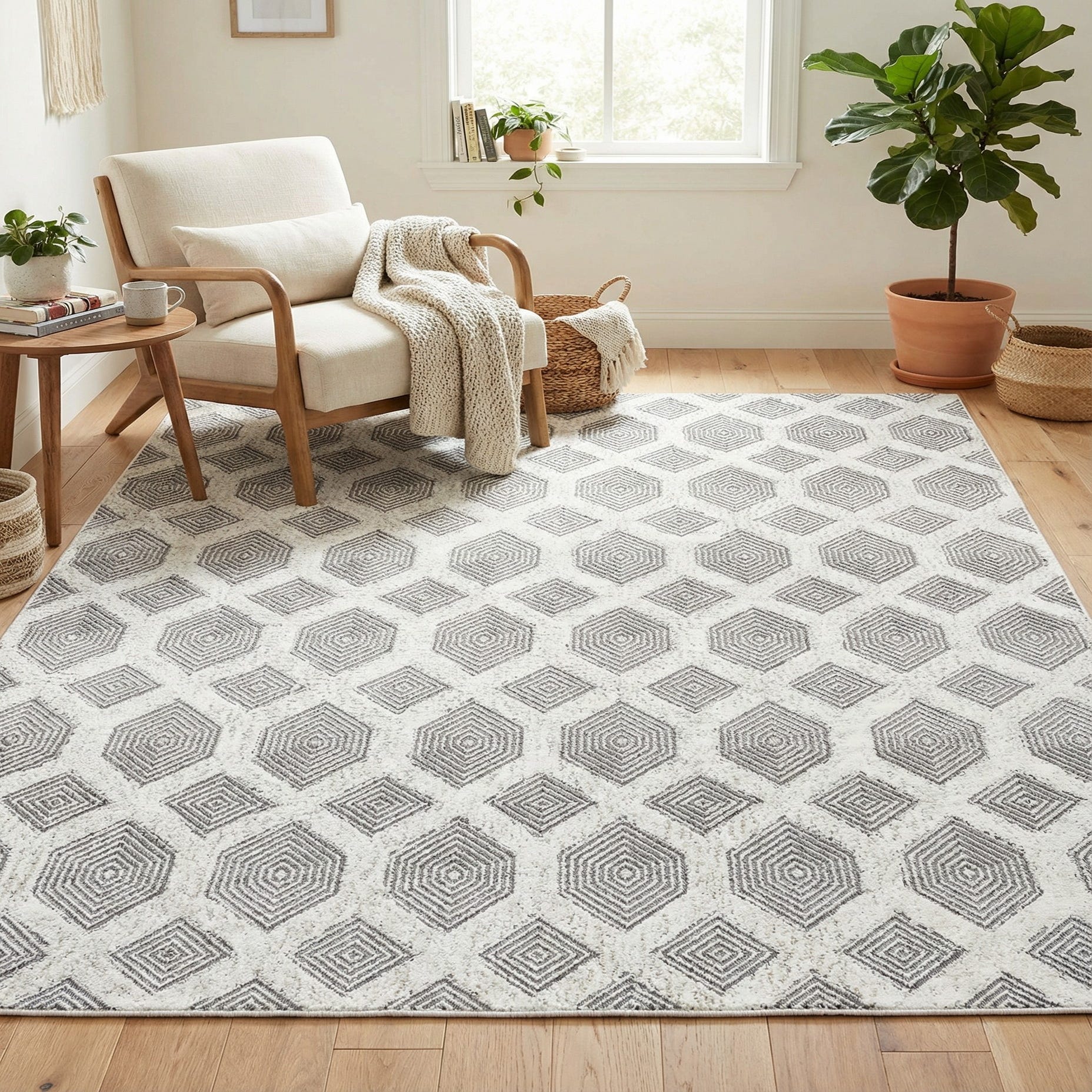 Primary color is Anthracite Gray. Colors in this rug include: Anthracite Gray, Ivory.