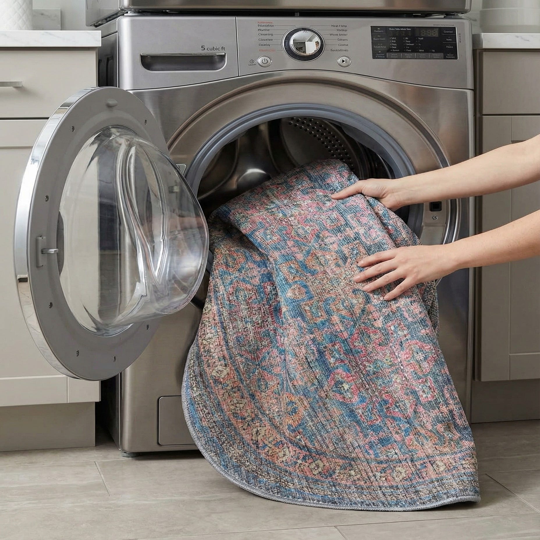 3' 3 x 3' 3 Washable Nostalgia Round Rug
