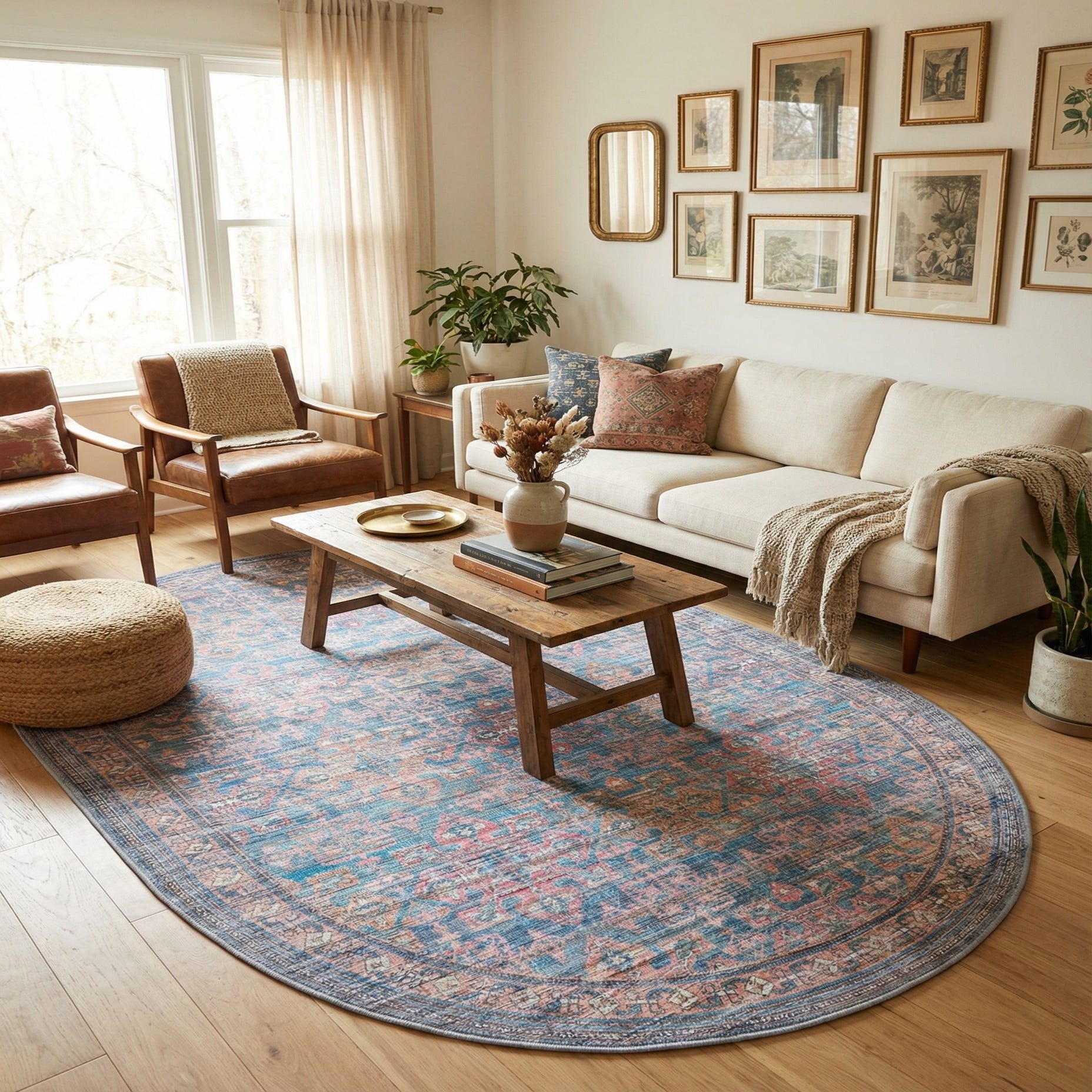 5' 3 x 8' Washable Nostalgia Oval Rug