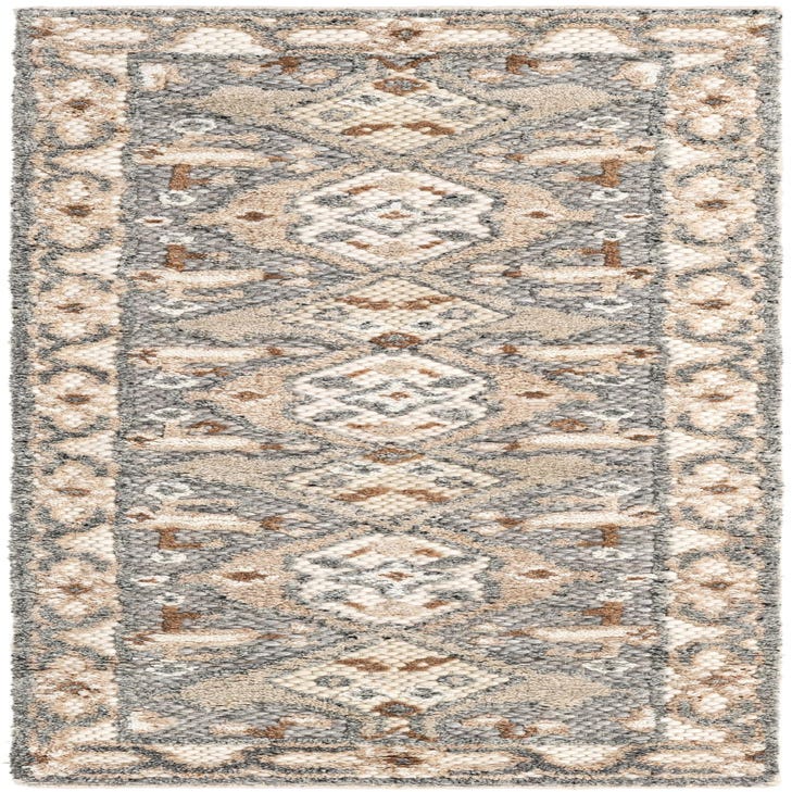 Primary color is Antique Gray. Colors in this rug include: Antique Gray, Beige, Brown.