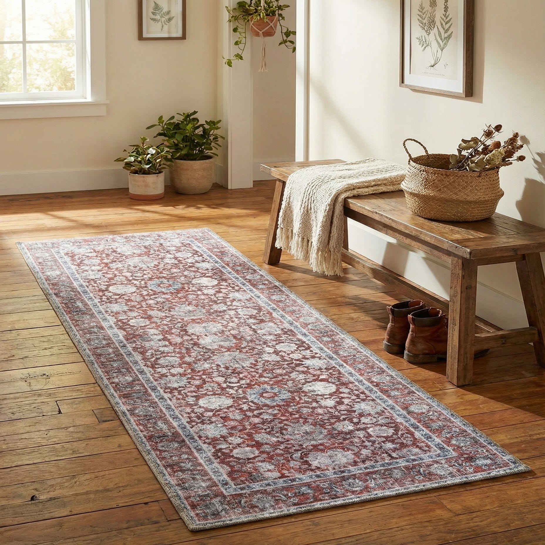Primary color is Antique Red. Colors in this rug include: Antique Red, Beige, Black, Blue, Brown, Ivory, Gray.
