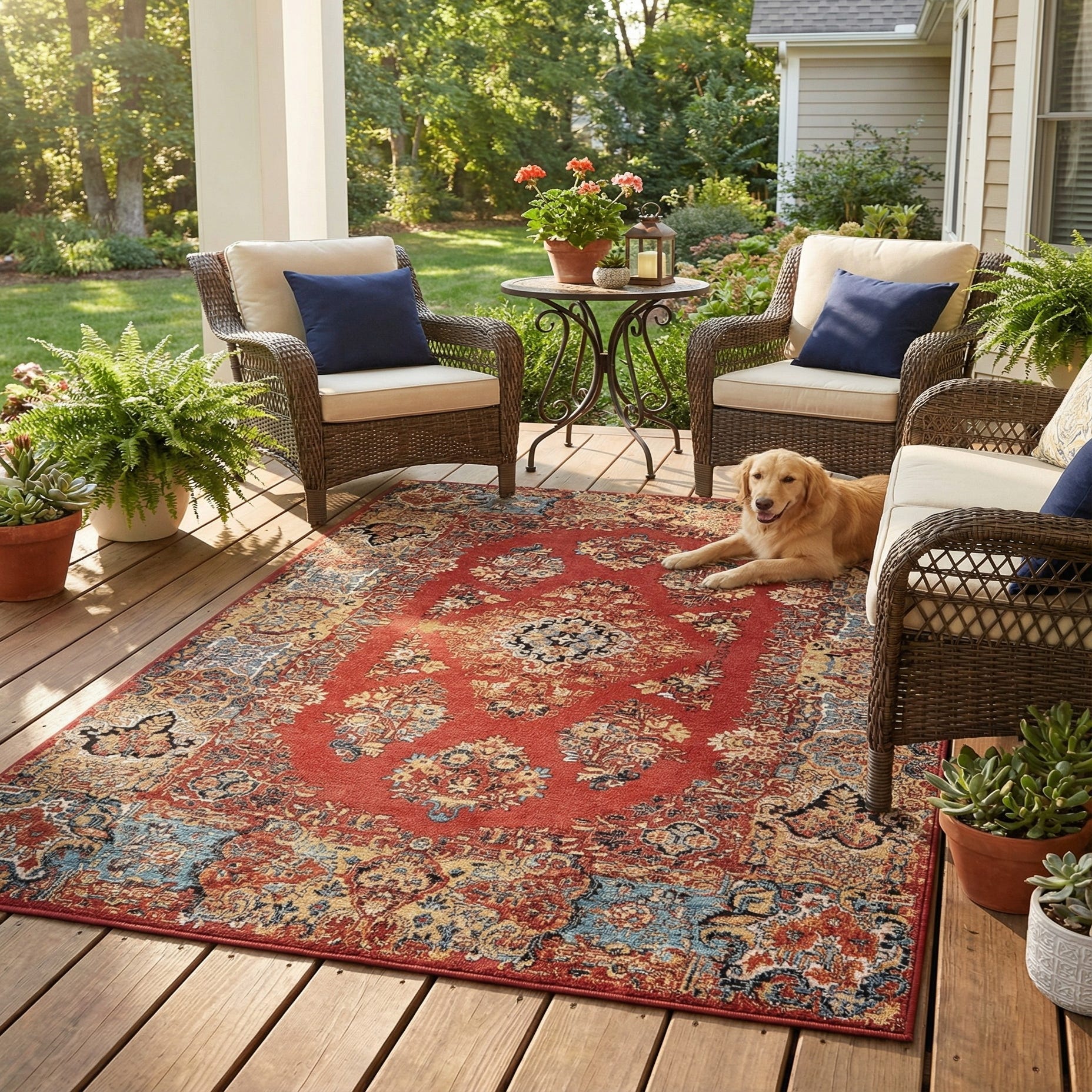 5' 3 x 8' Washable Traditional Indoor / Outdoor Rug
