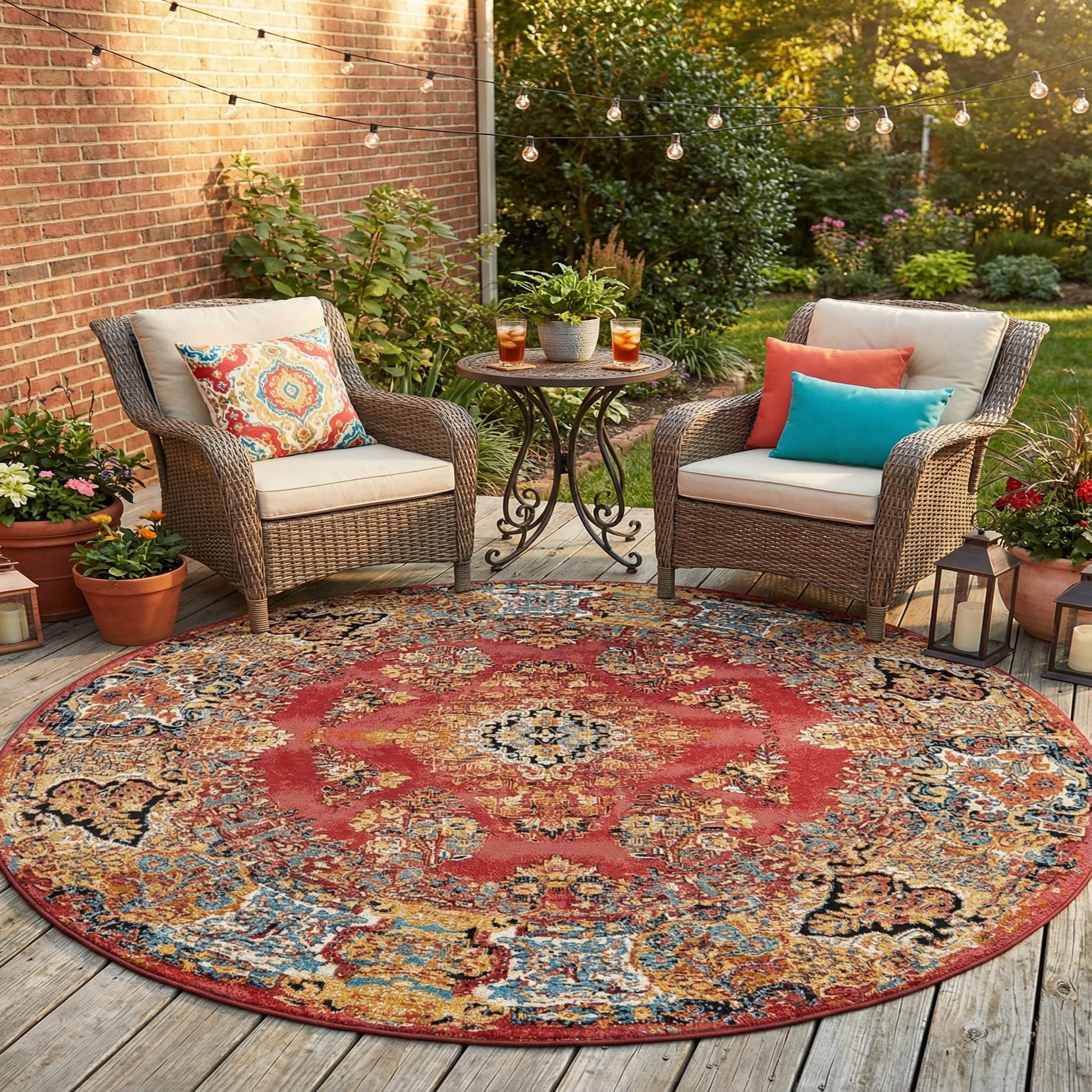 Primary image 7' 10 x 7' 10  Washable Traditional Indoor / Outdoor Round Rug