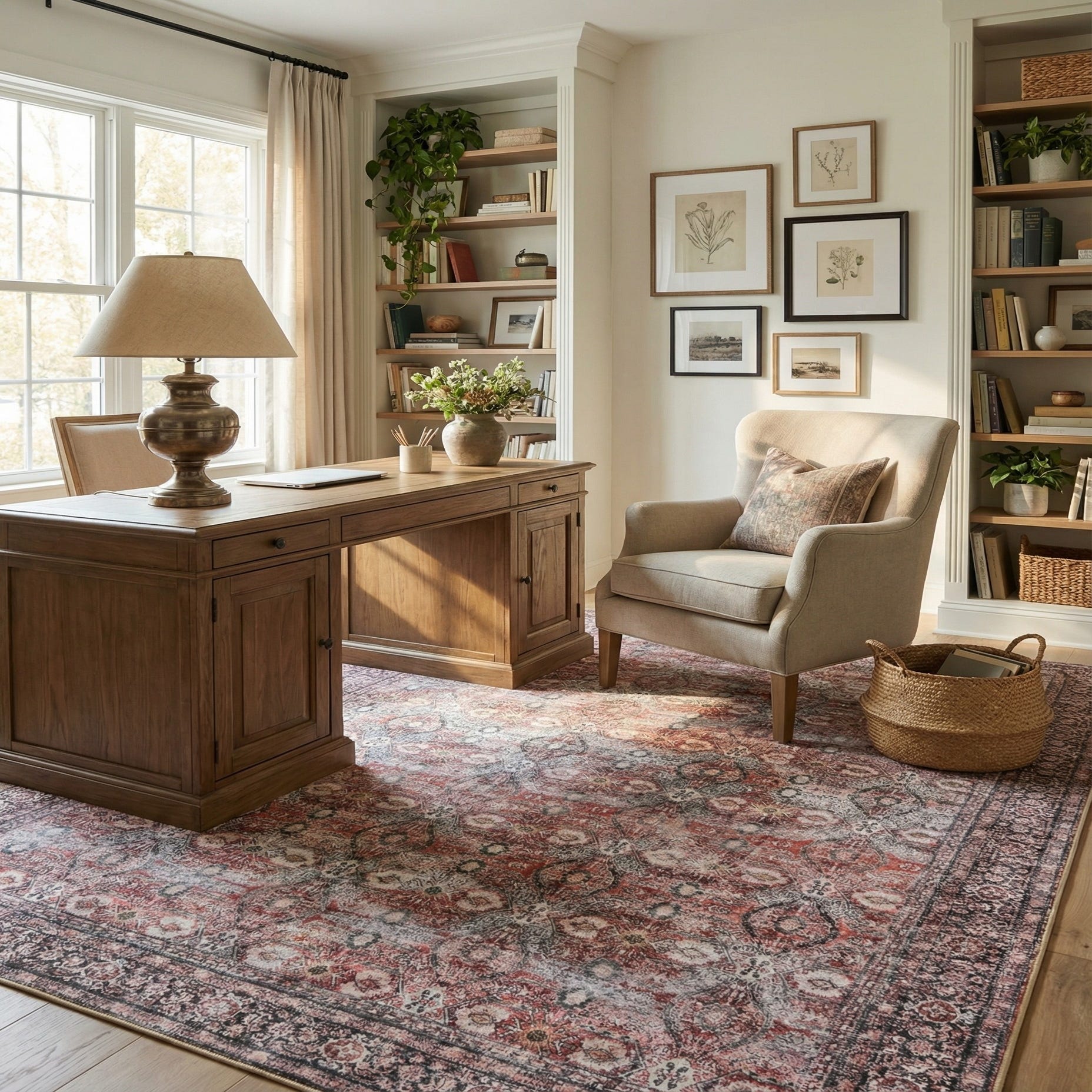 Primary color is Antique Red. Colors in this rug include: Antique Red, Black, Blue, Brown, Beige, Gray.