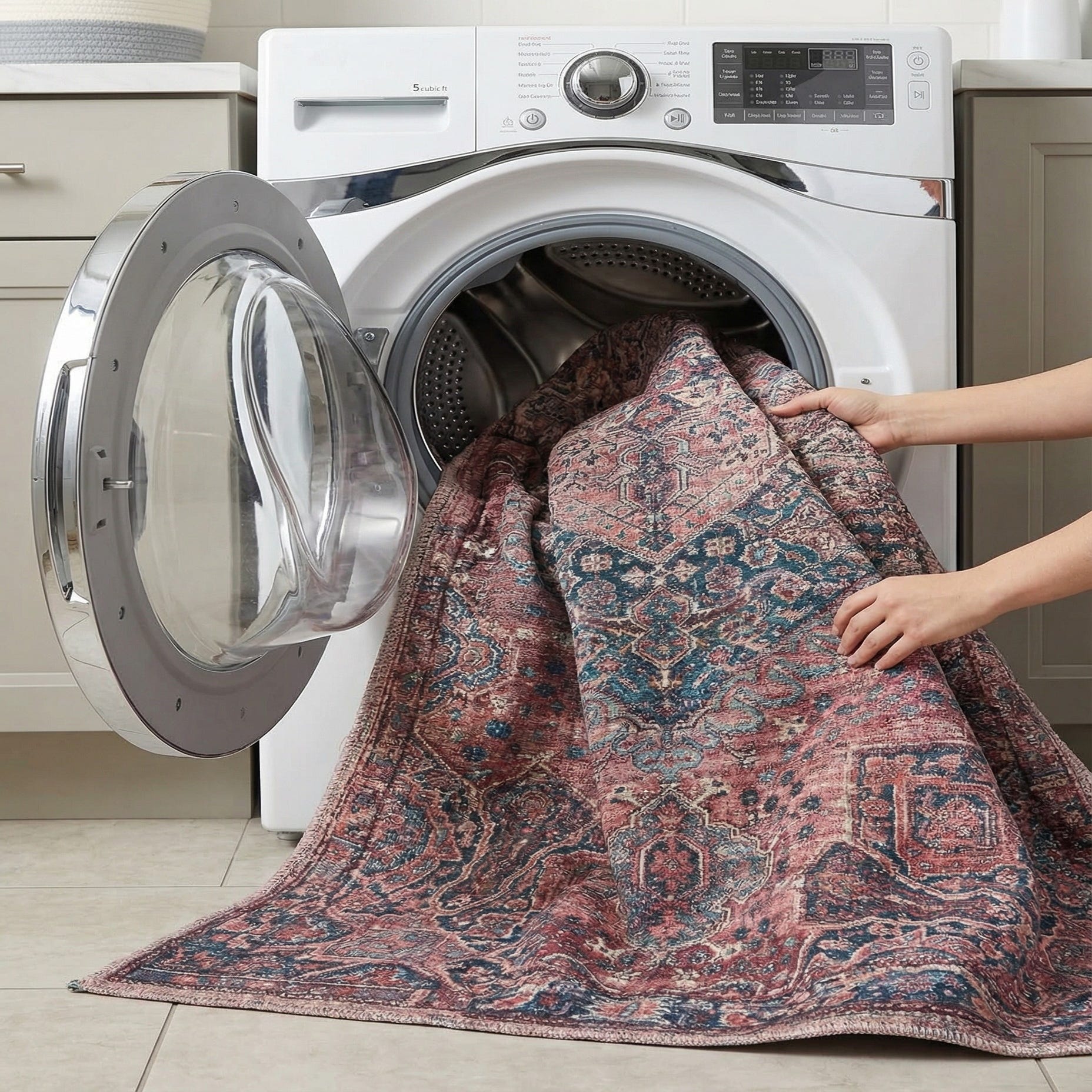 Primary color is Antique Rust Red. Colors in this rug include: Antique Rust Red, Blue, Ivory, Gray, Light Blue, Navy Blue.