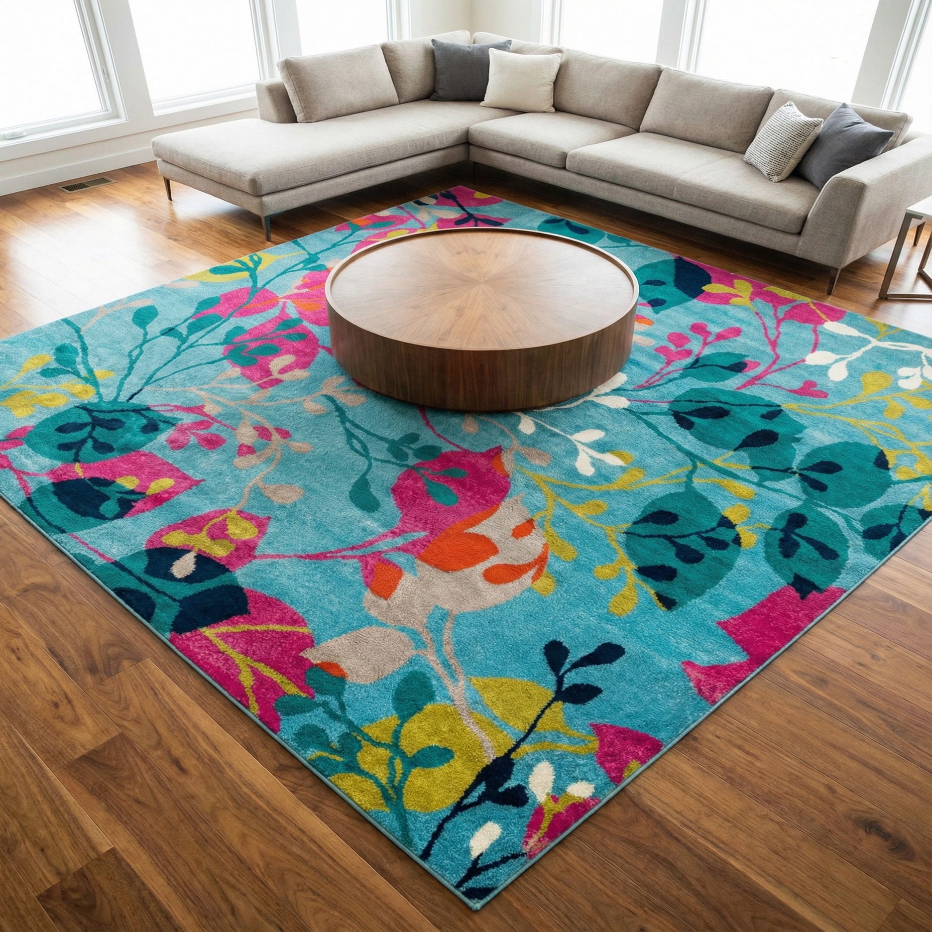 Primary color is Aqua. Colors in this rug include: Aqua, Blue, Green, Ivory, Light Blue, Gray, Navy Blue.
