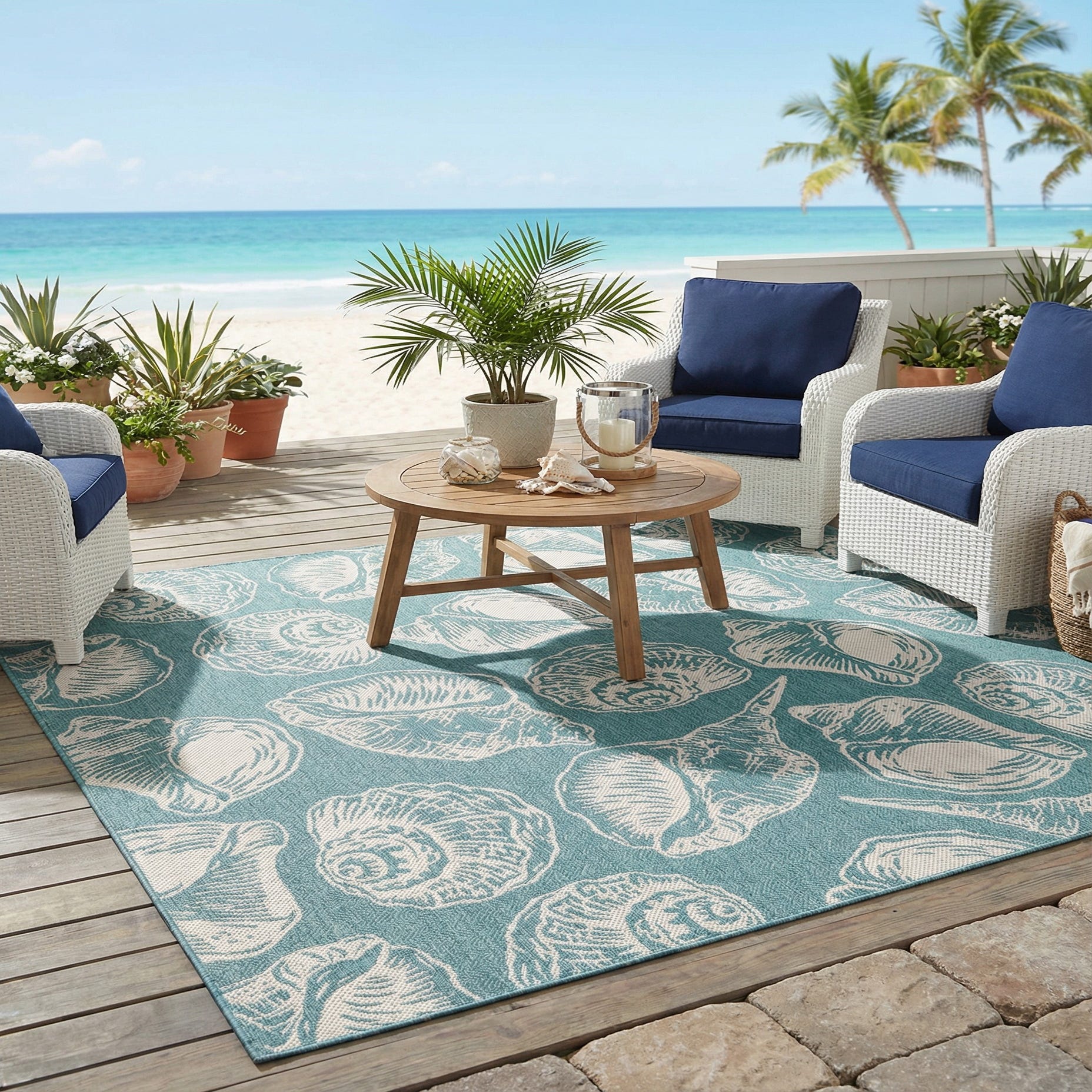 10' x 10' Washable Coastal Indoor / Outdoor Square Rug