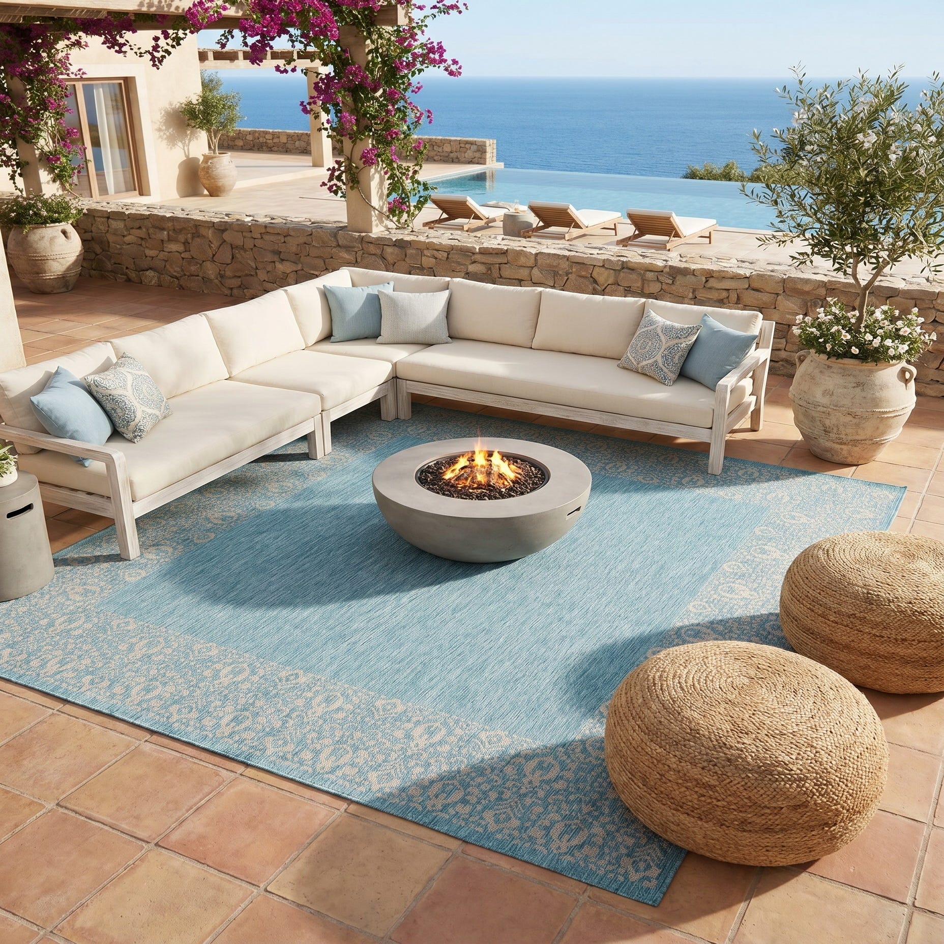 I LOVE this rug. It’s gorgeous. It fits my space perfectly and covers the imperfections of my patio that are waiting to be repaired. I’ve received so many compliments. My outdoor space has never been cozier and more for inviting. The best part is how quickly it dries after a rain. I am thoroughly impressed by the quality and craftsmanship of this rug.