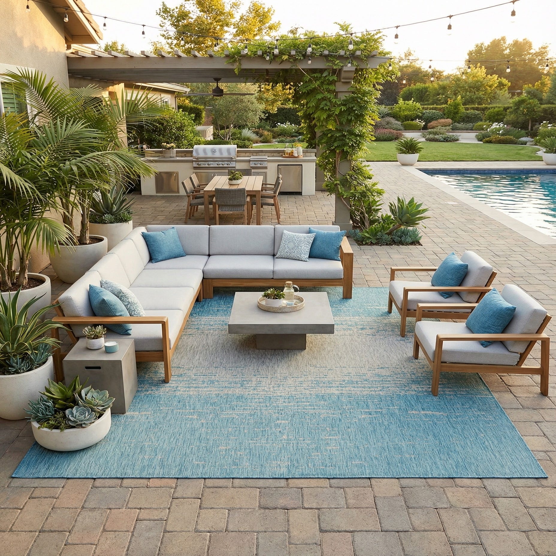 10' 8 x 10' 8 Washable Modern Indoor / Outdoor Square Rug
