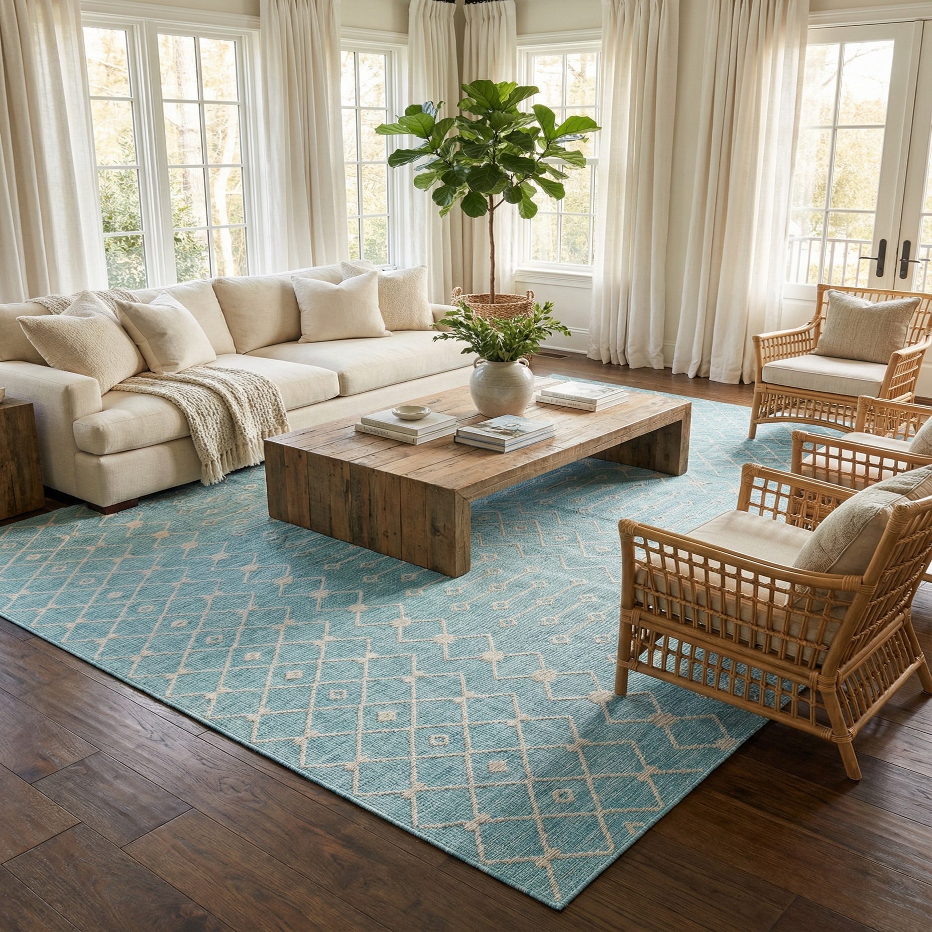 10' 8 x 10' 8 Washable Trellis Indoor / Outdoor Square Rug