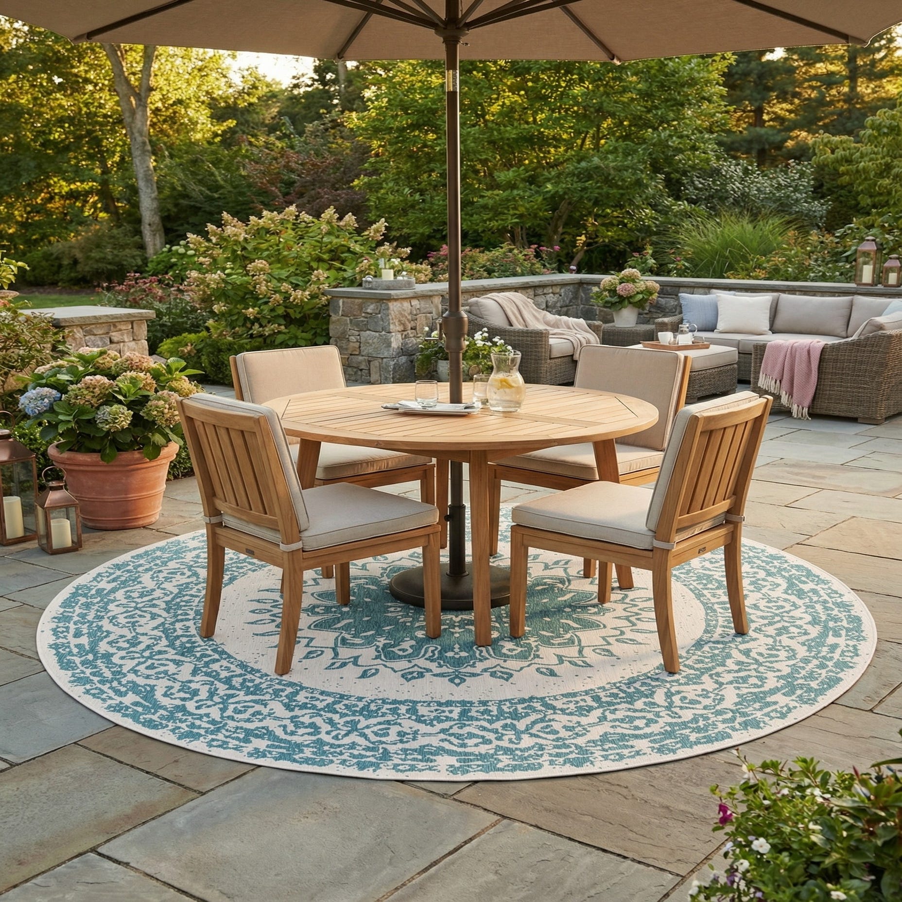 12' x 12' Washable Traditional Indoor / Outdoor Round Rug