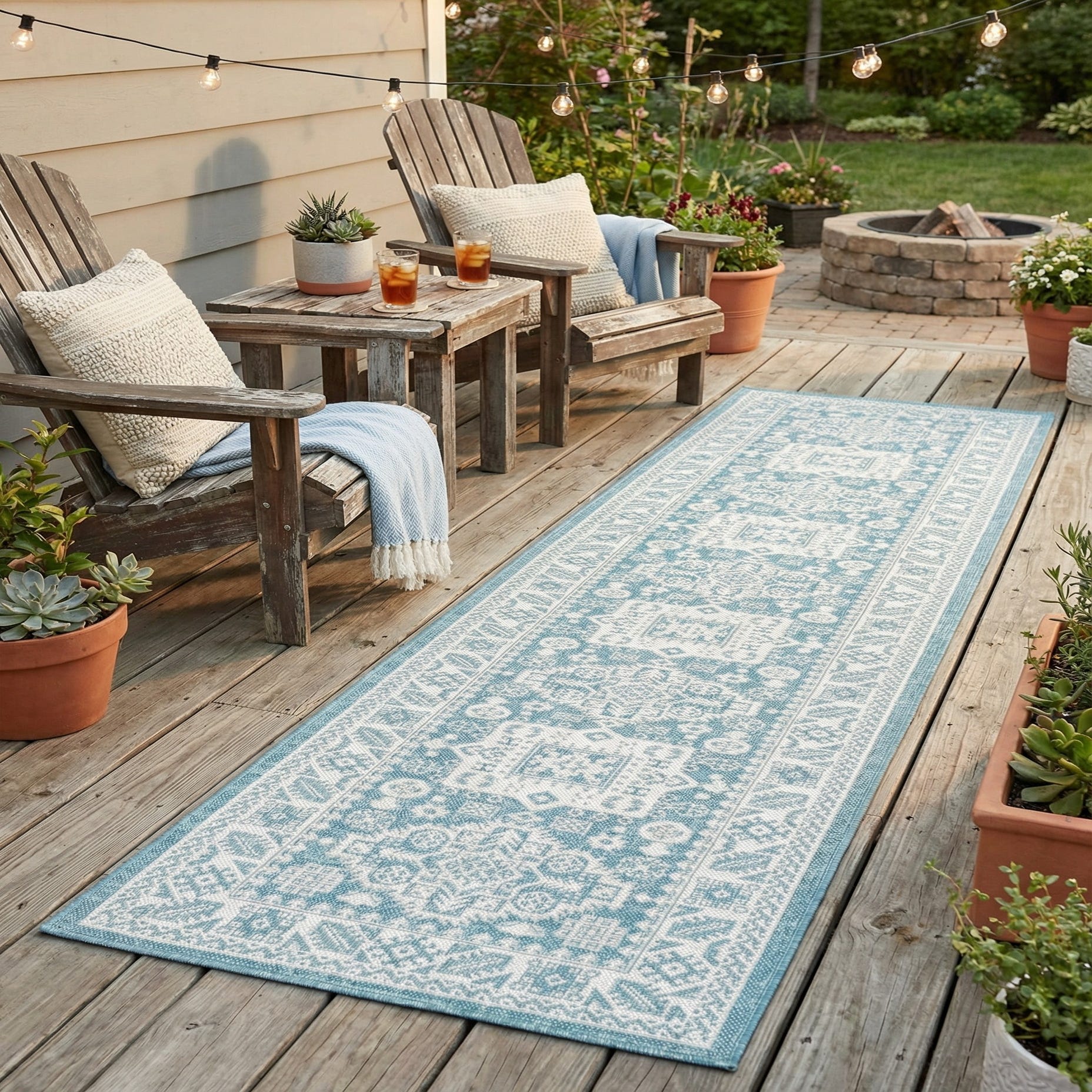2' 7 x 12' Washable Aztec Indoor / Outdoor Runner Rug