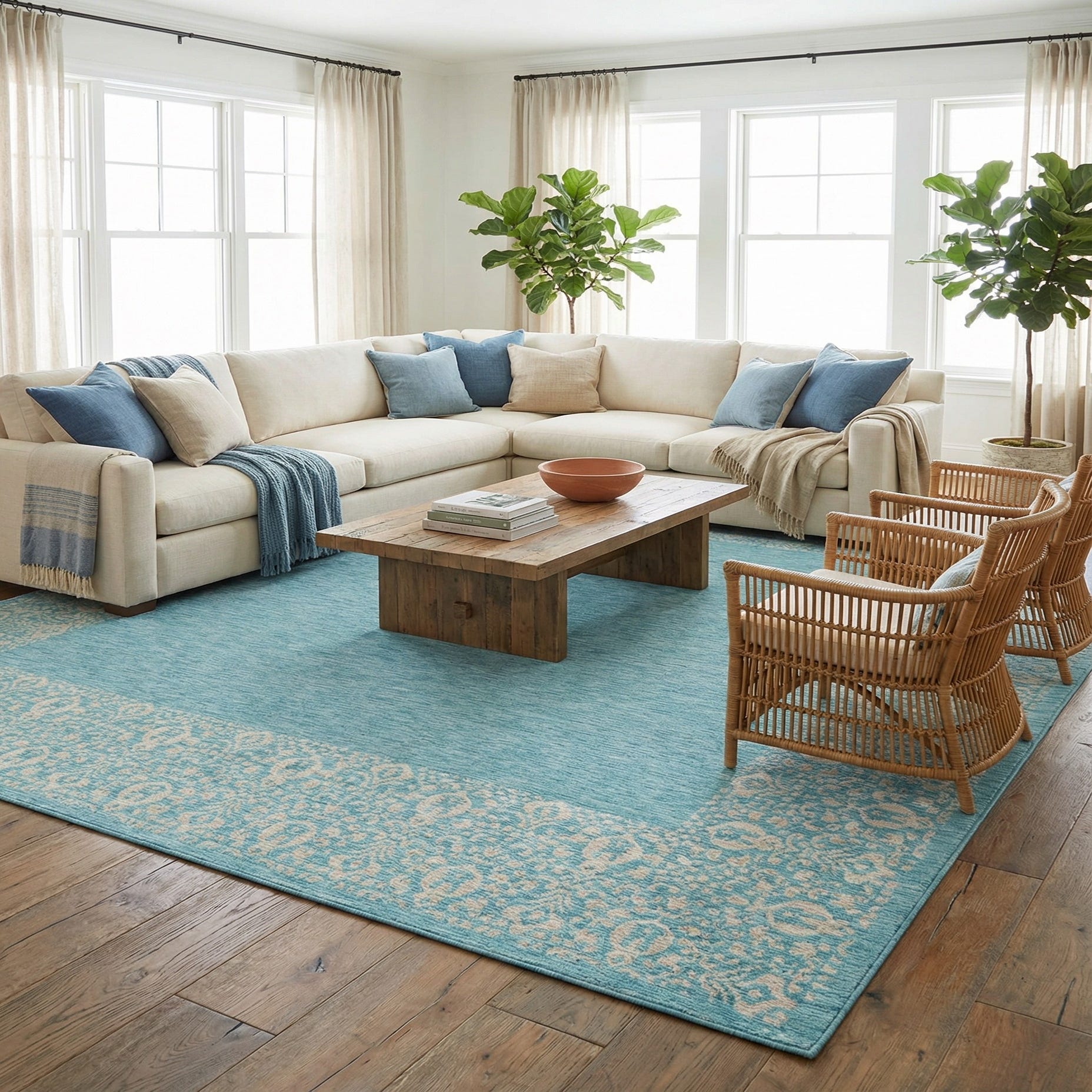 13' x 13' Washable Border Indoor / Outdoor Square Rug