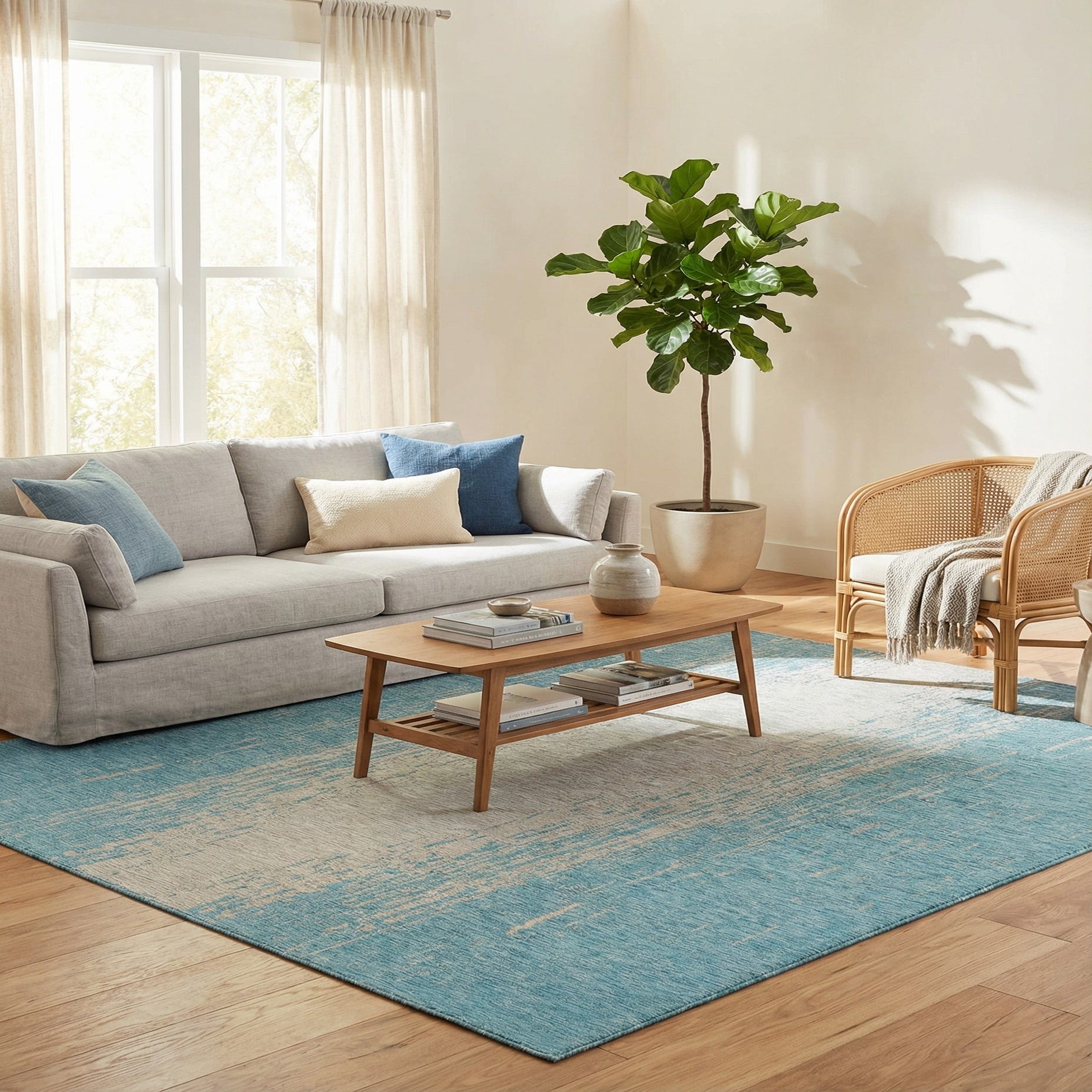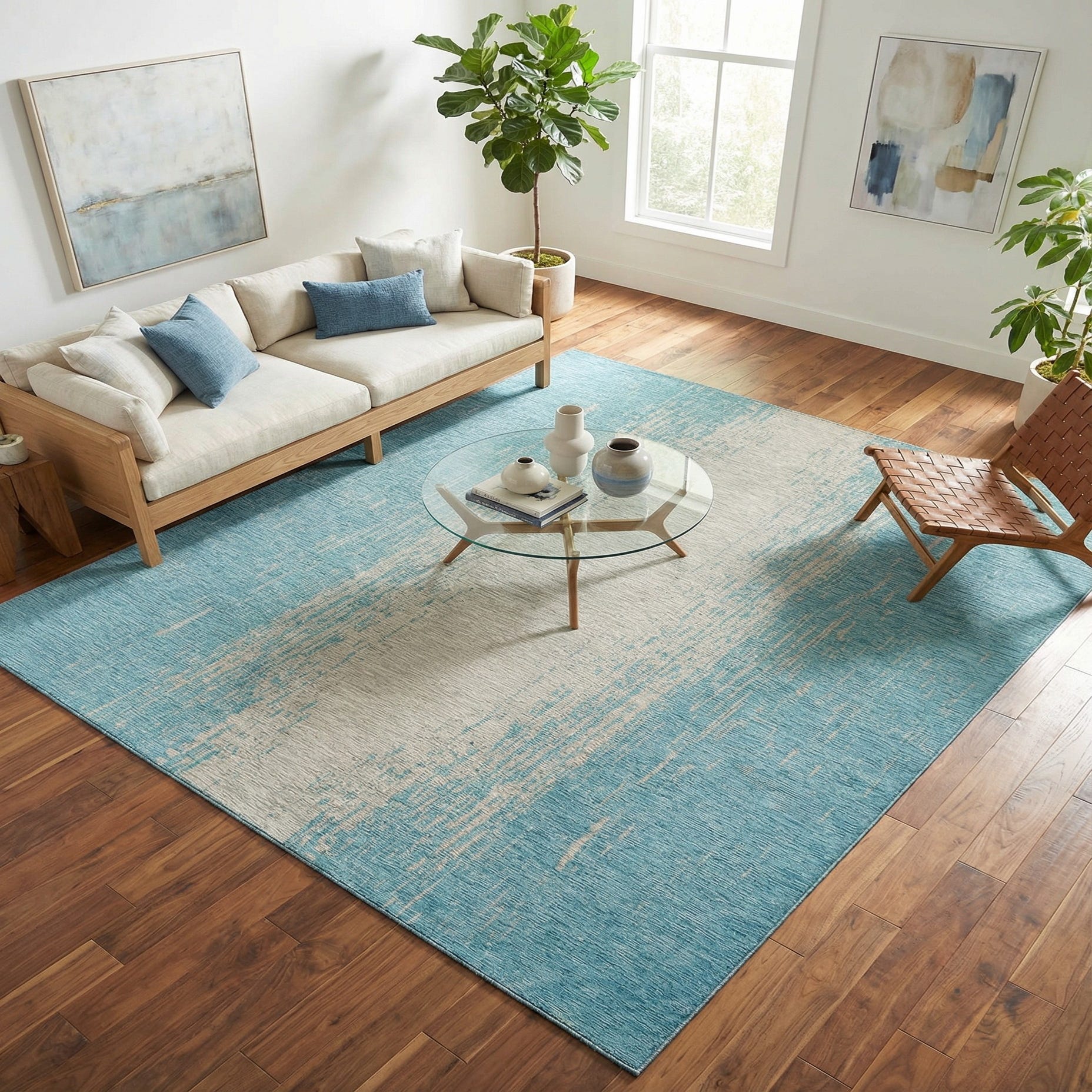 Primary color is Aqua. Colors in this rug include: Aqua, Ivory.