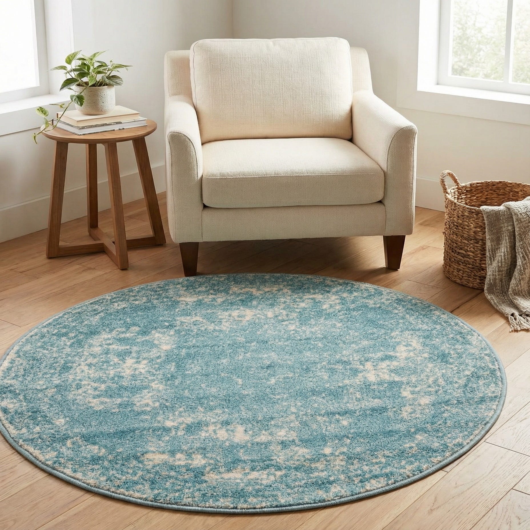 Primary color is Aqua. Colors in this rug include: Aqua, Ivory.