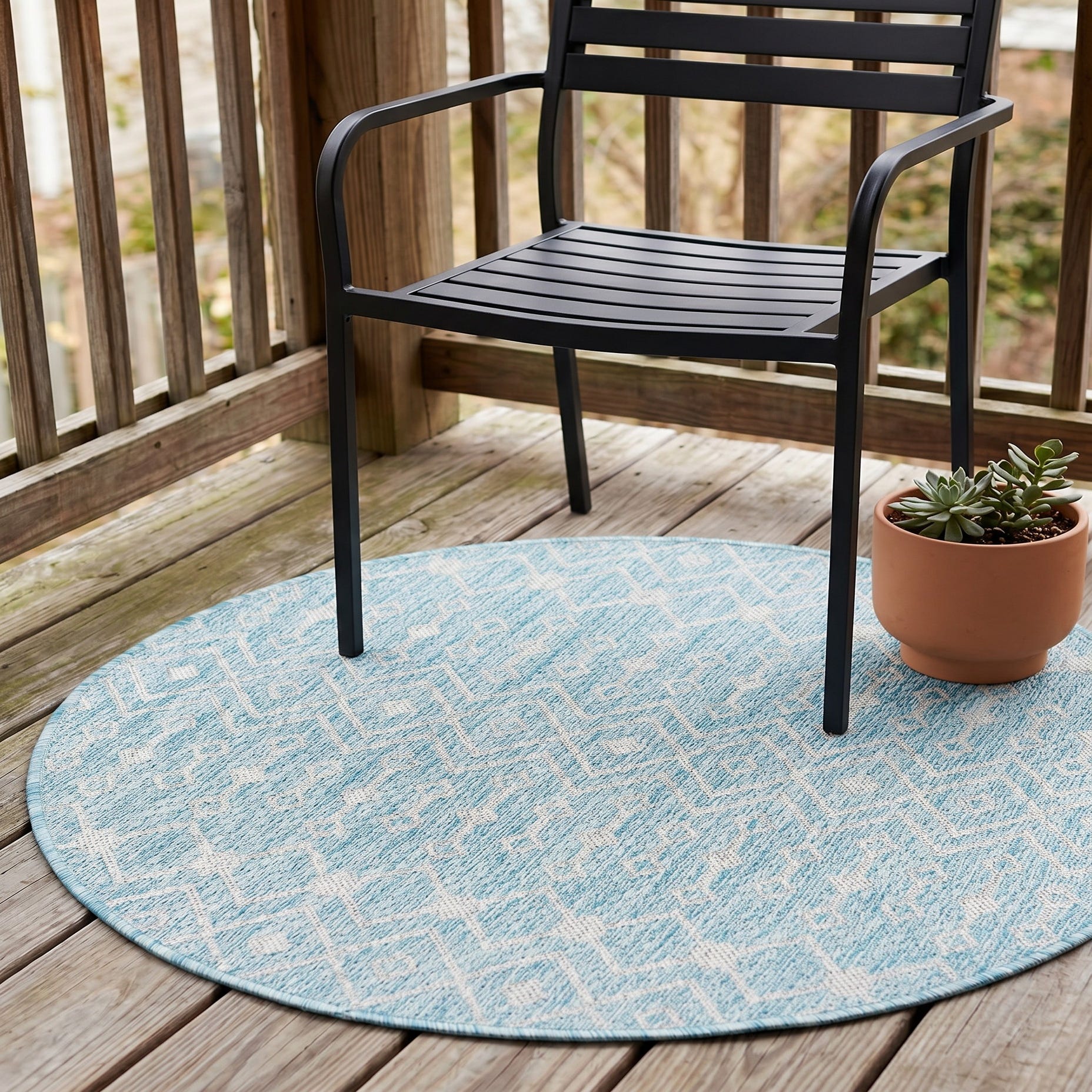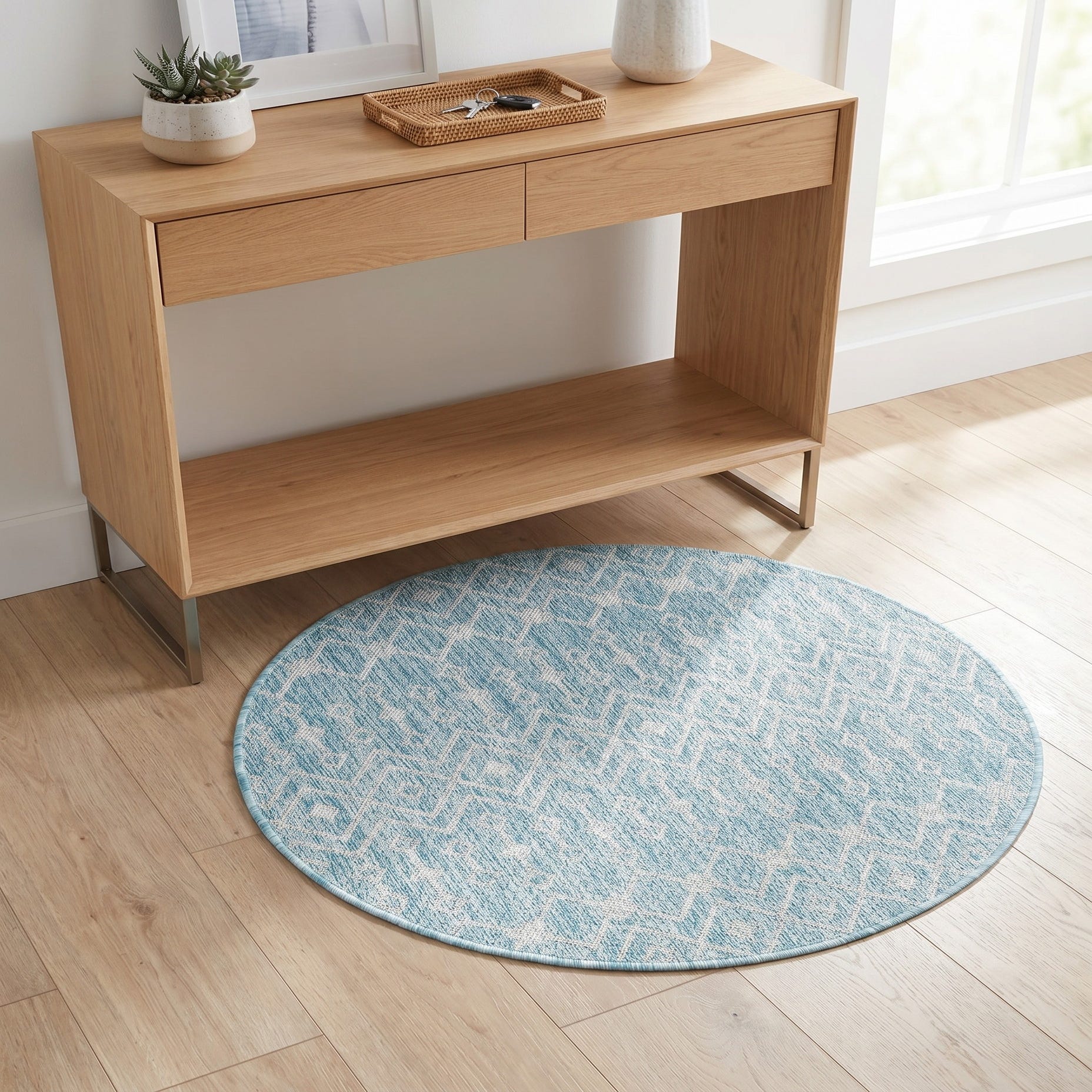 3' x 3' Easy-Clean Trellis Indoor / Outdoor Round Rug