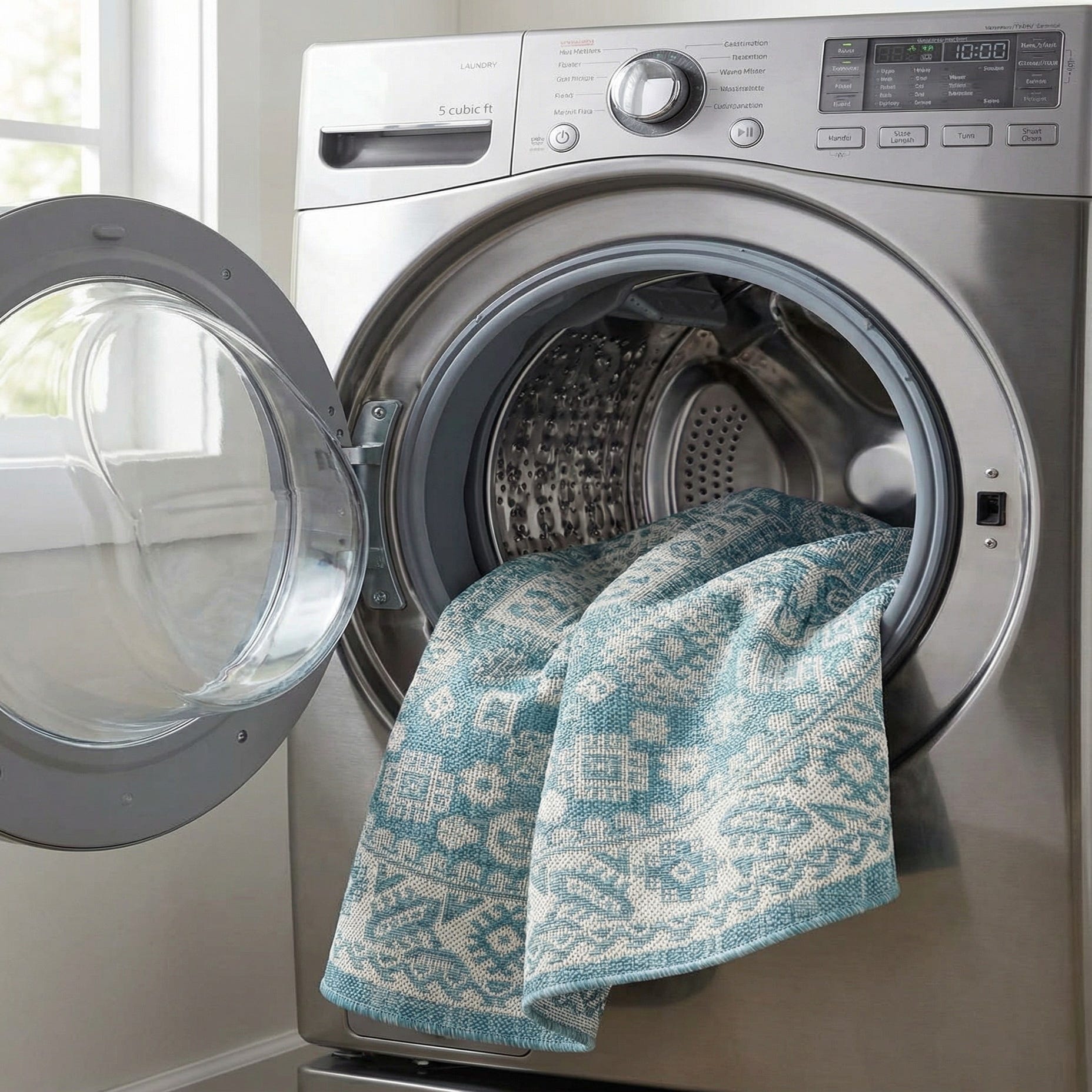 Primary color is Aqua. Colors in this rug include: Aqua, Ivory.