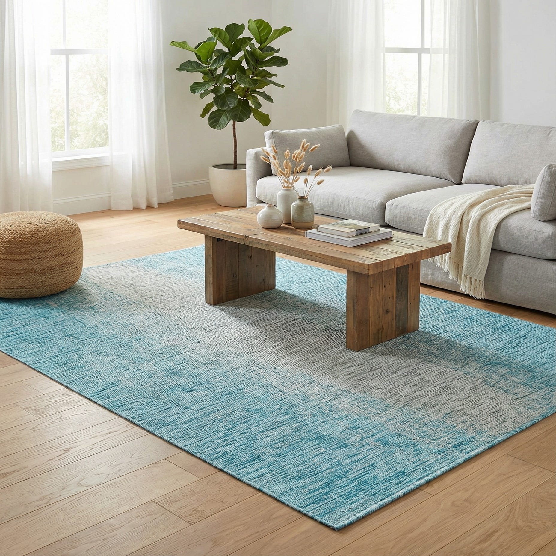 Primary color is Aqua. Colors in this rug include: Aqua, Gray, Ivory.