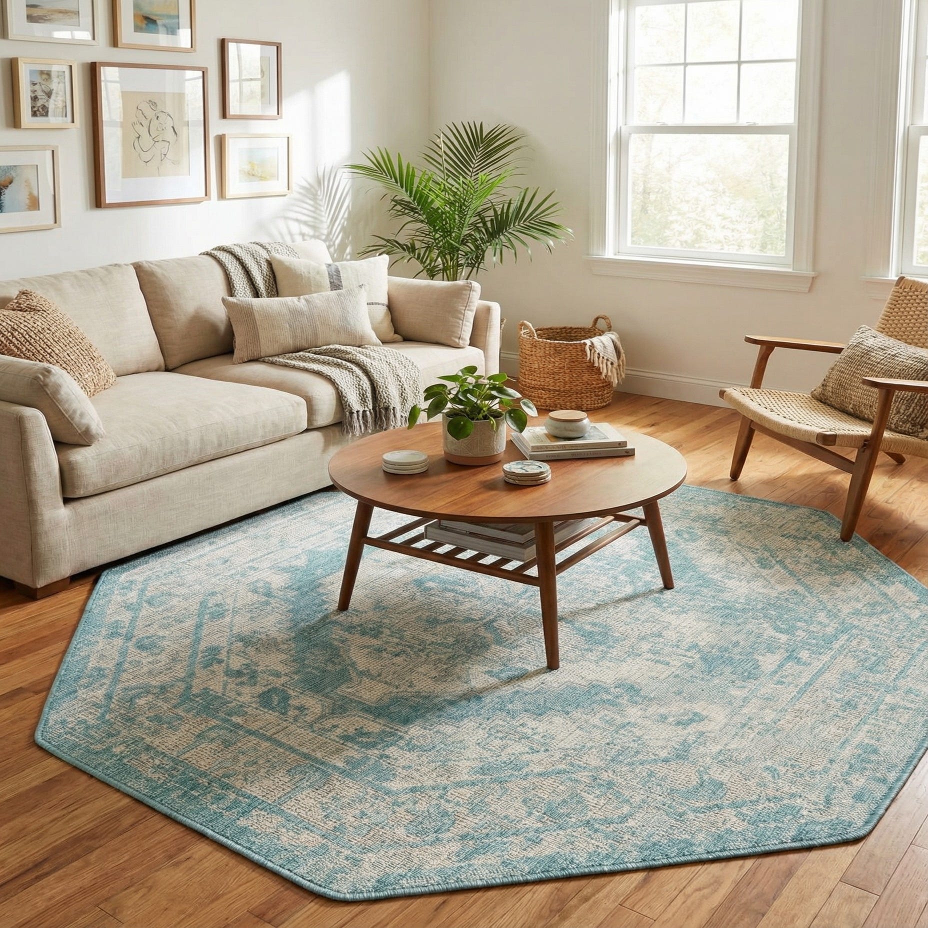 5' 3 x 5' 3 Washable Traditional Indoor / Outdoor Octagon Rug