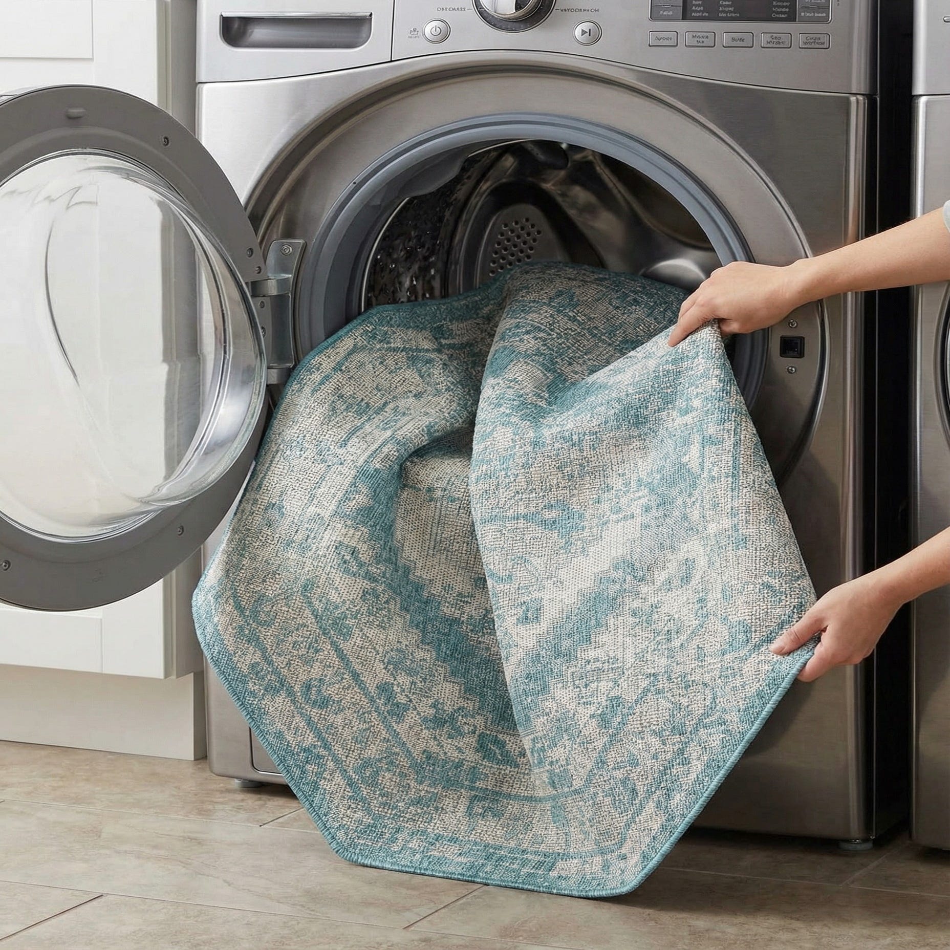 Detail image of 5' 3 x 5' 3  Washable Traditional Indoor / Outdoor Octagon Rug