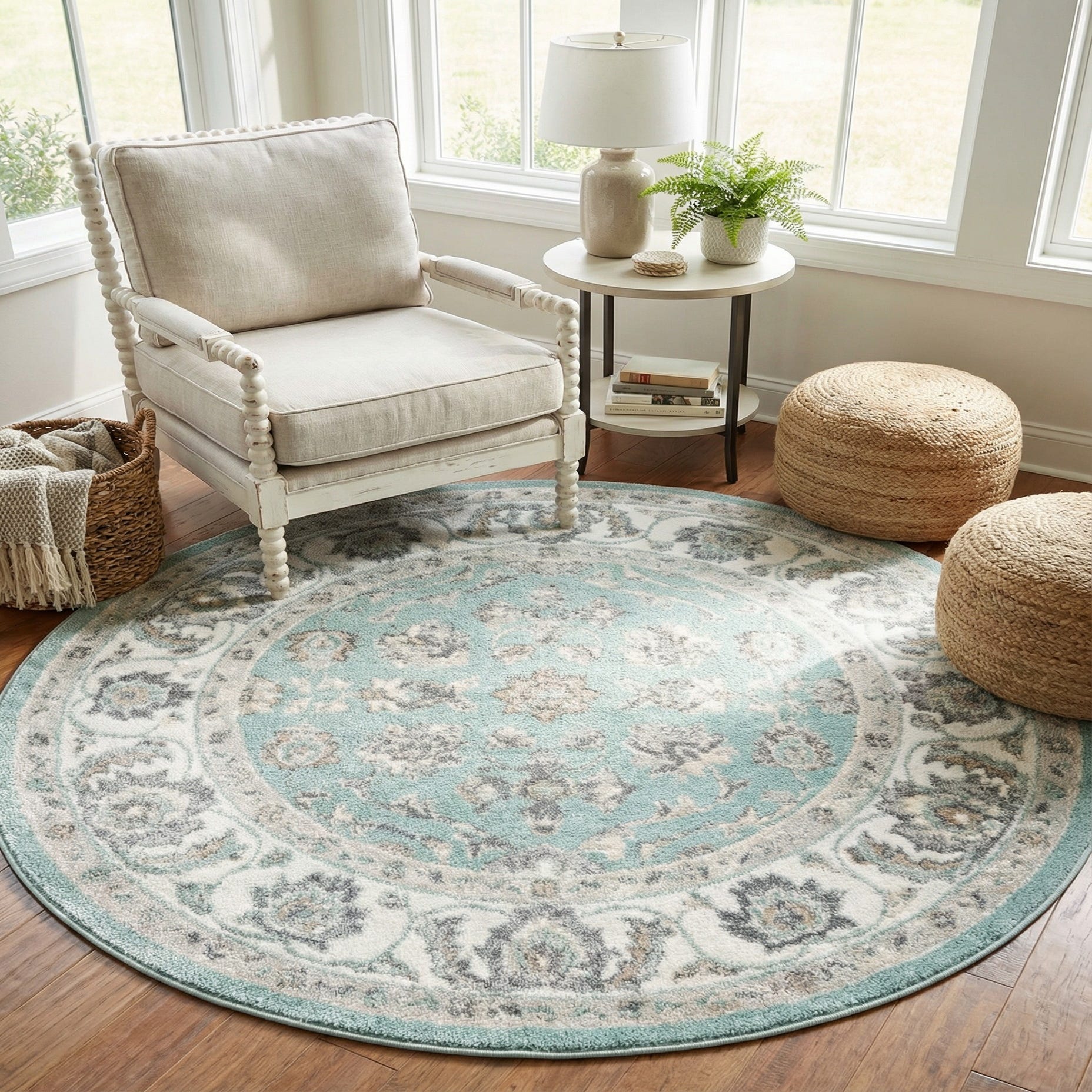 Primary color is Aqua. Colors in this rug include: Aqua, Black, Gray, Ivory, Beige.