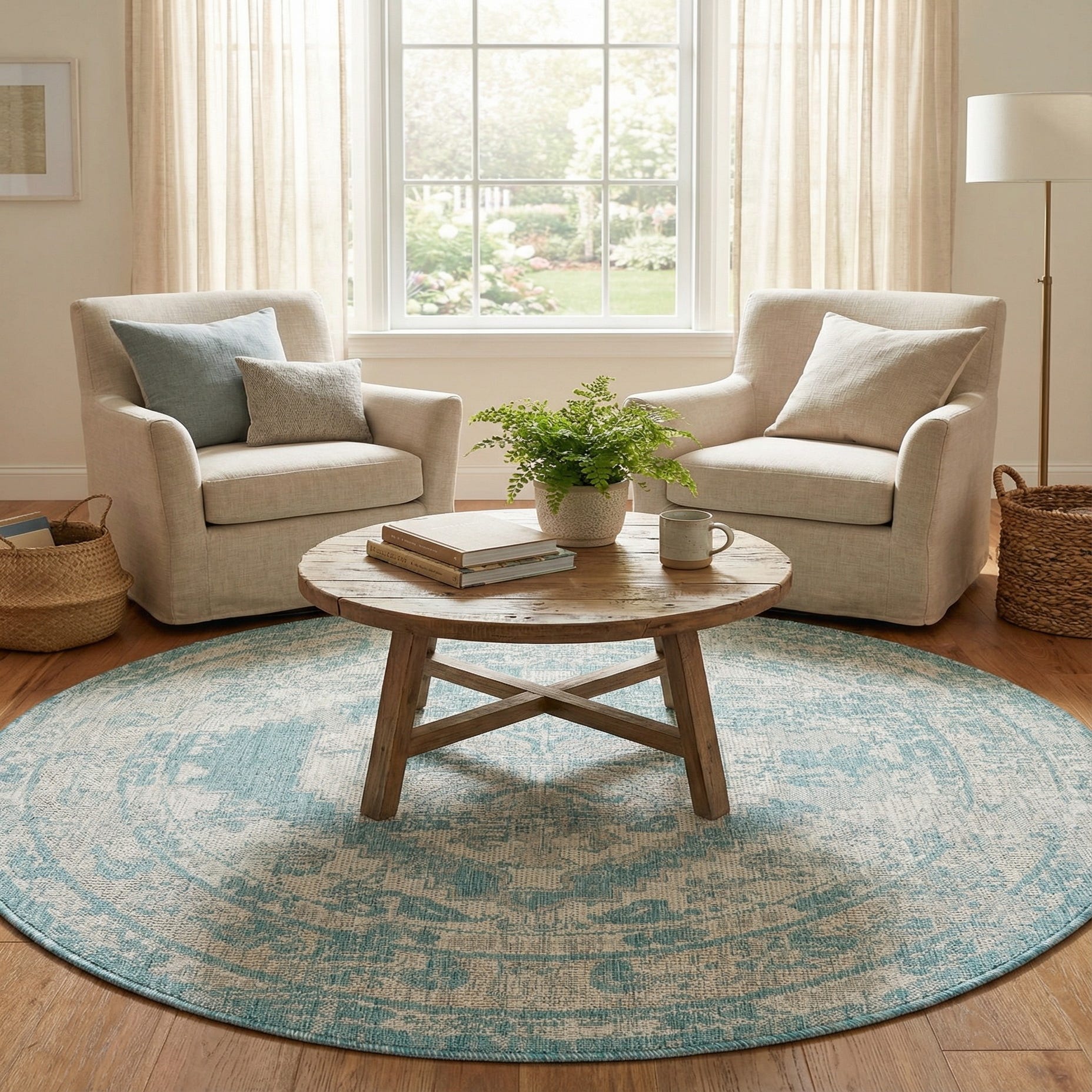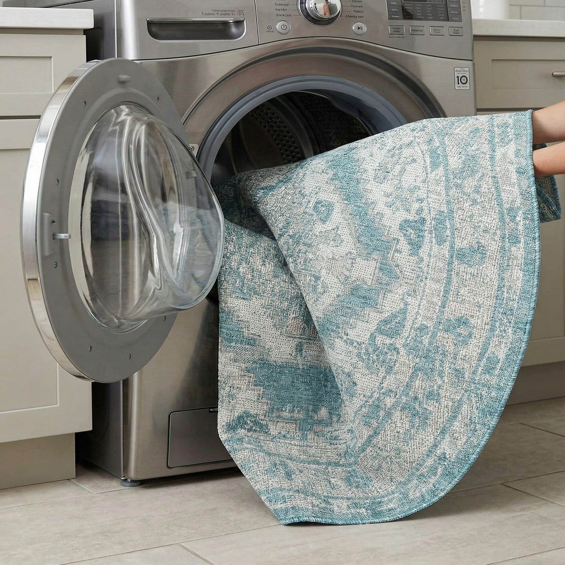 Detail image of 5' 3 x 5' 3  Washable Traditional Indoor / Outdoor Round Rug