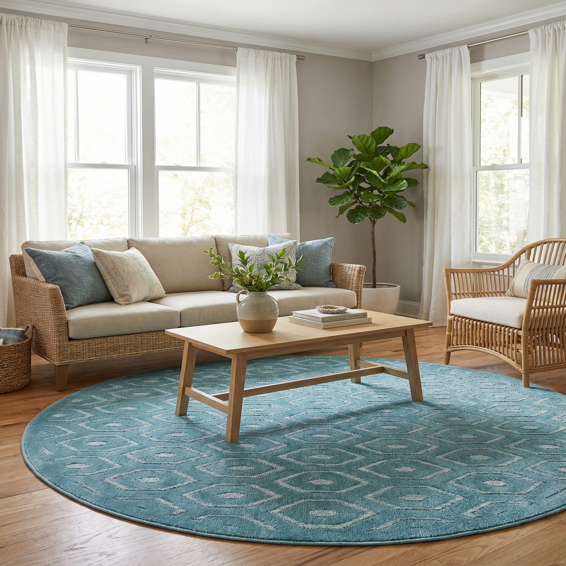 5' 3 x 5' 3 Washable Trellis Textured Indoor / Outdoor Round Rug