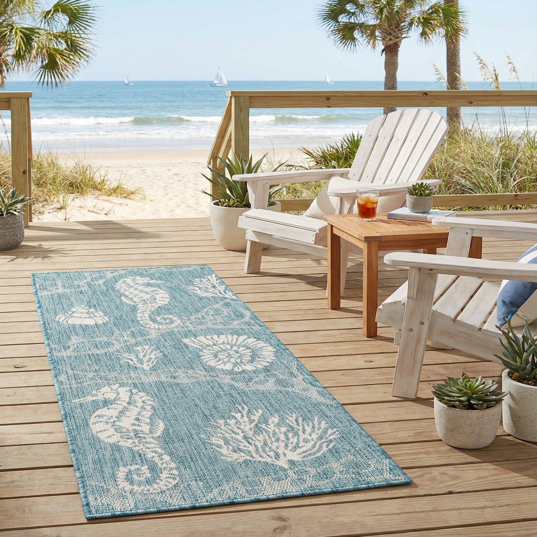 2' x 5' 3 Washable Coastal Indoor / Outdoor Runner Rug