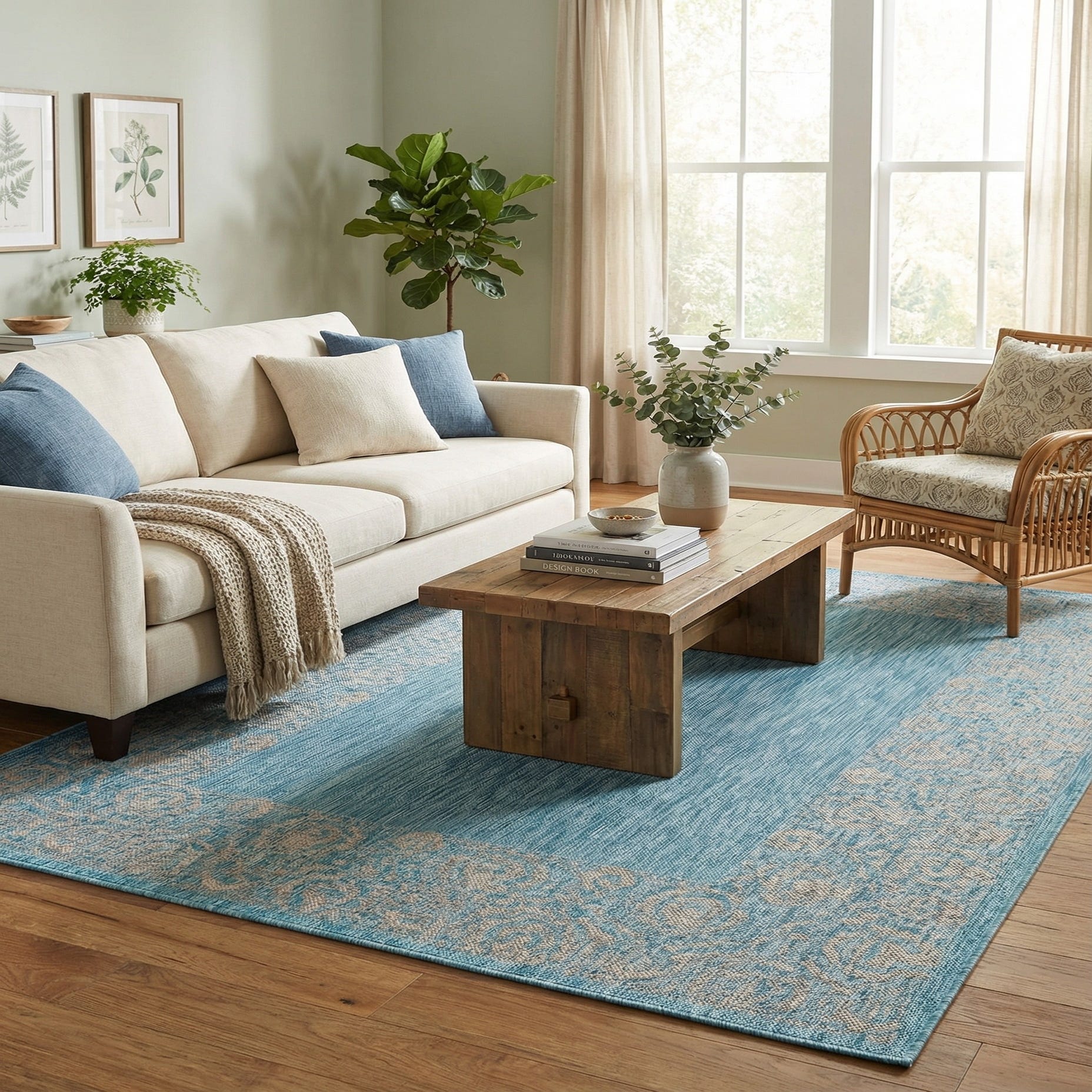 5' 3 x 8' Washable Border Indoor / Outdoor Rug