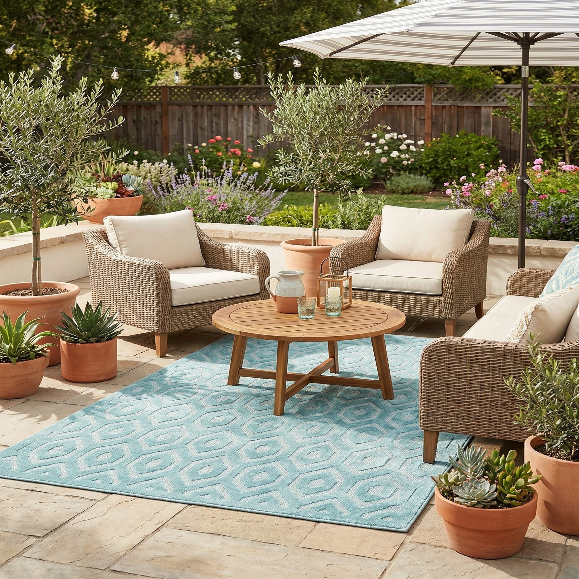 6' x 9' Washable Trellis Textured Indoor / Outdoor Rug