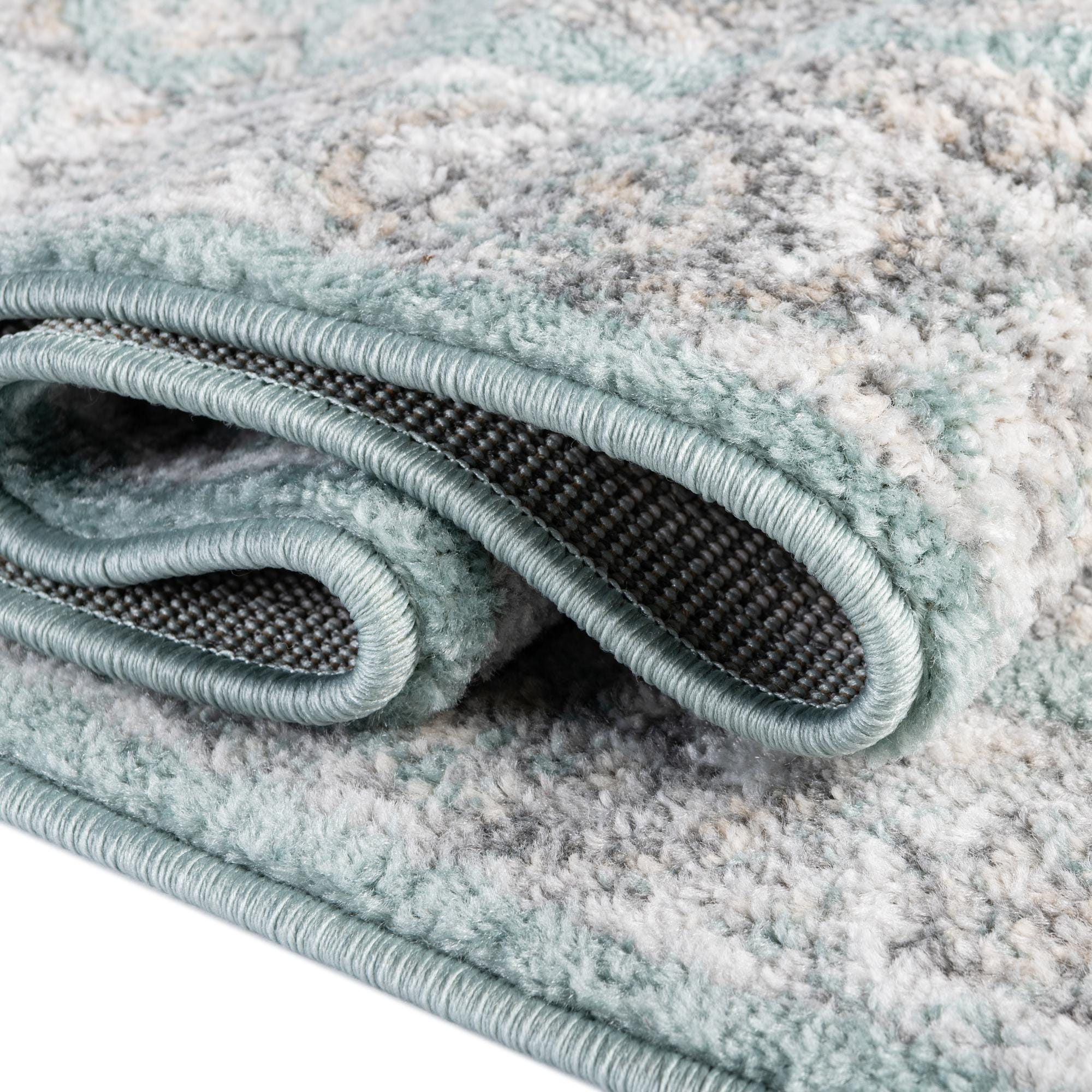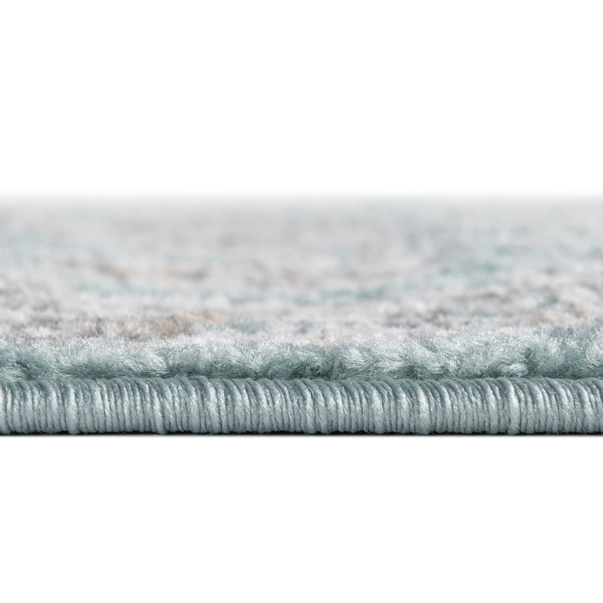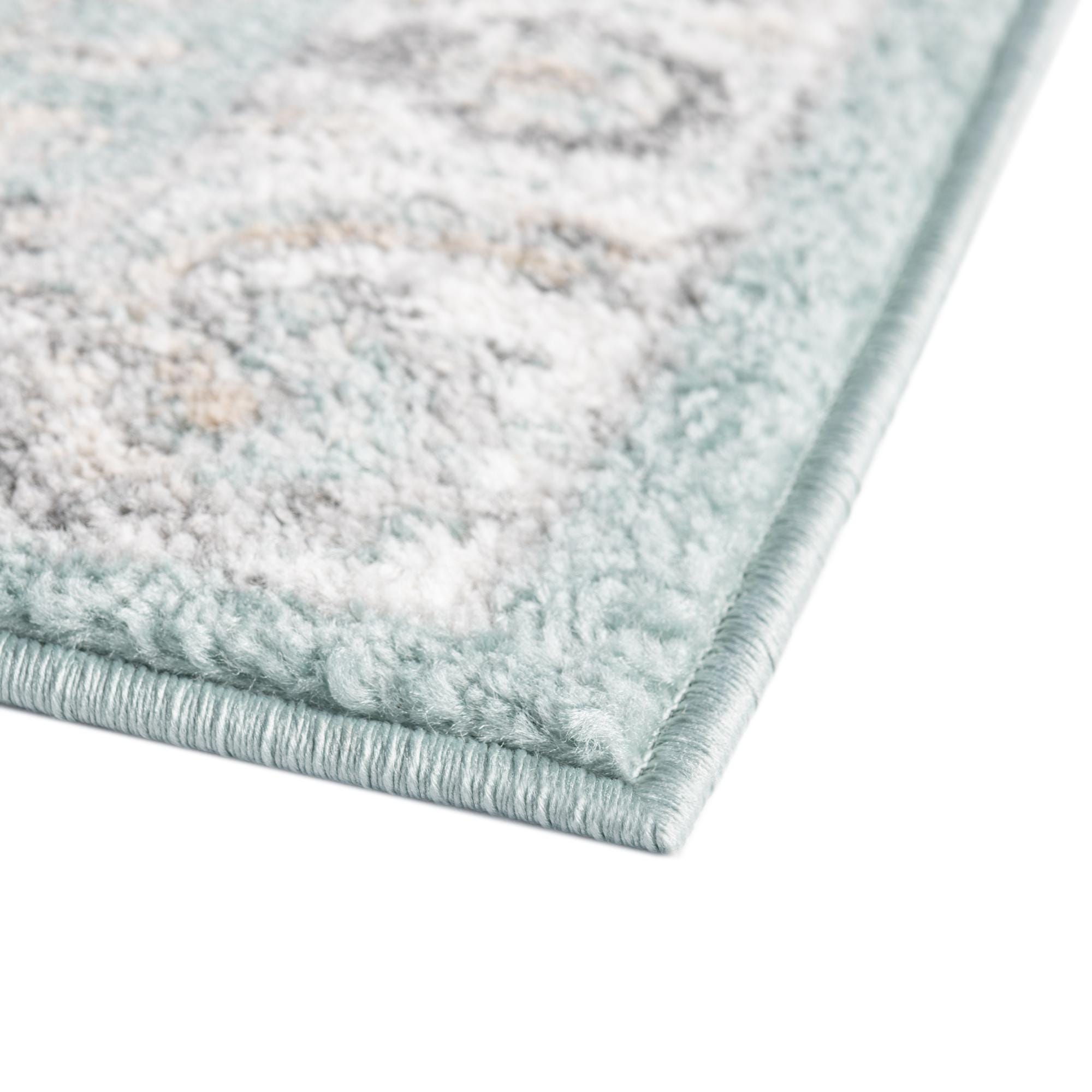 Primary color is Aqua. Colors in this rug include: Aqua, Black, Gray, Ivory, Beige.