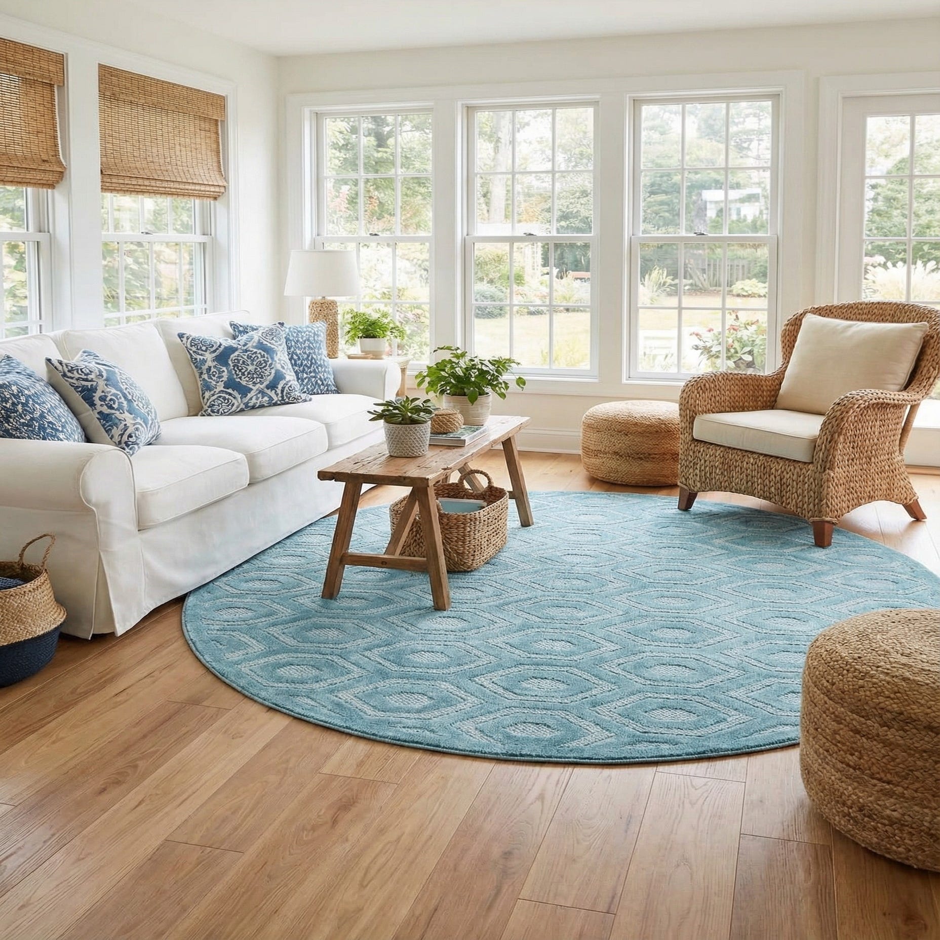 7' x 7' Washable Trellis Textured Indoor / Outdoor Round Rug