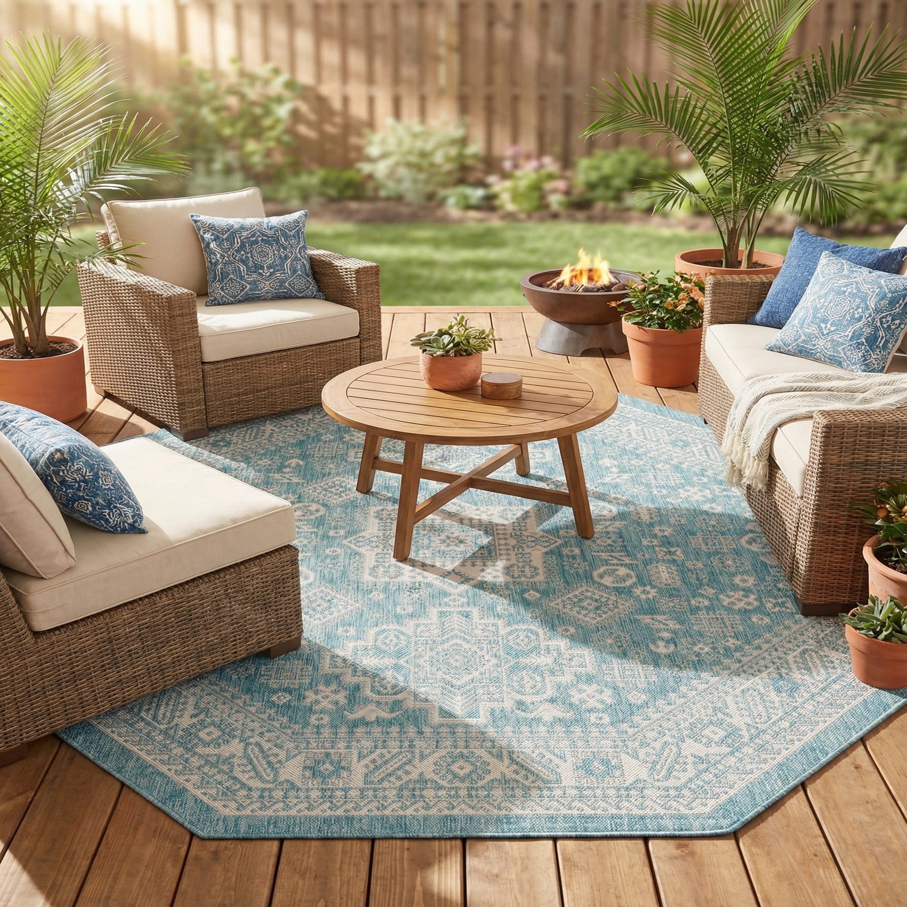 Primary image 7' 10 x 7' 10  Washable Aztec Indoor / Outdoor Octagon Rug