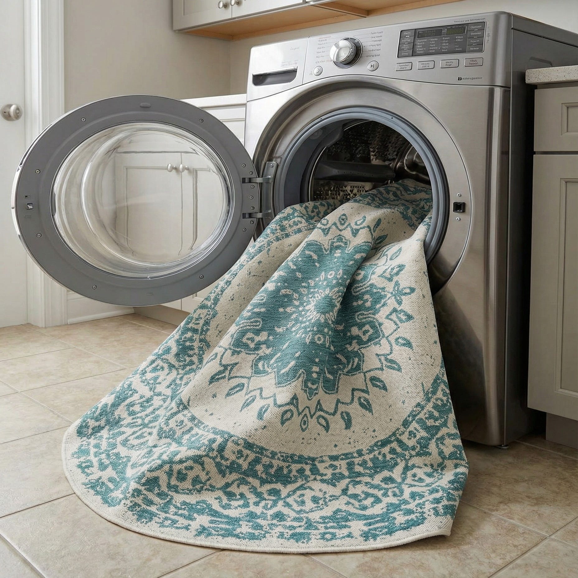 Primary image 7' 10 x 7' 10  Washable Traditional Indoor / Outdoor Round Rug