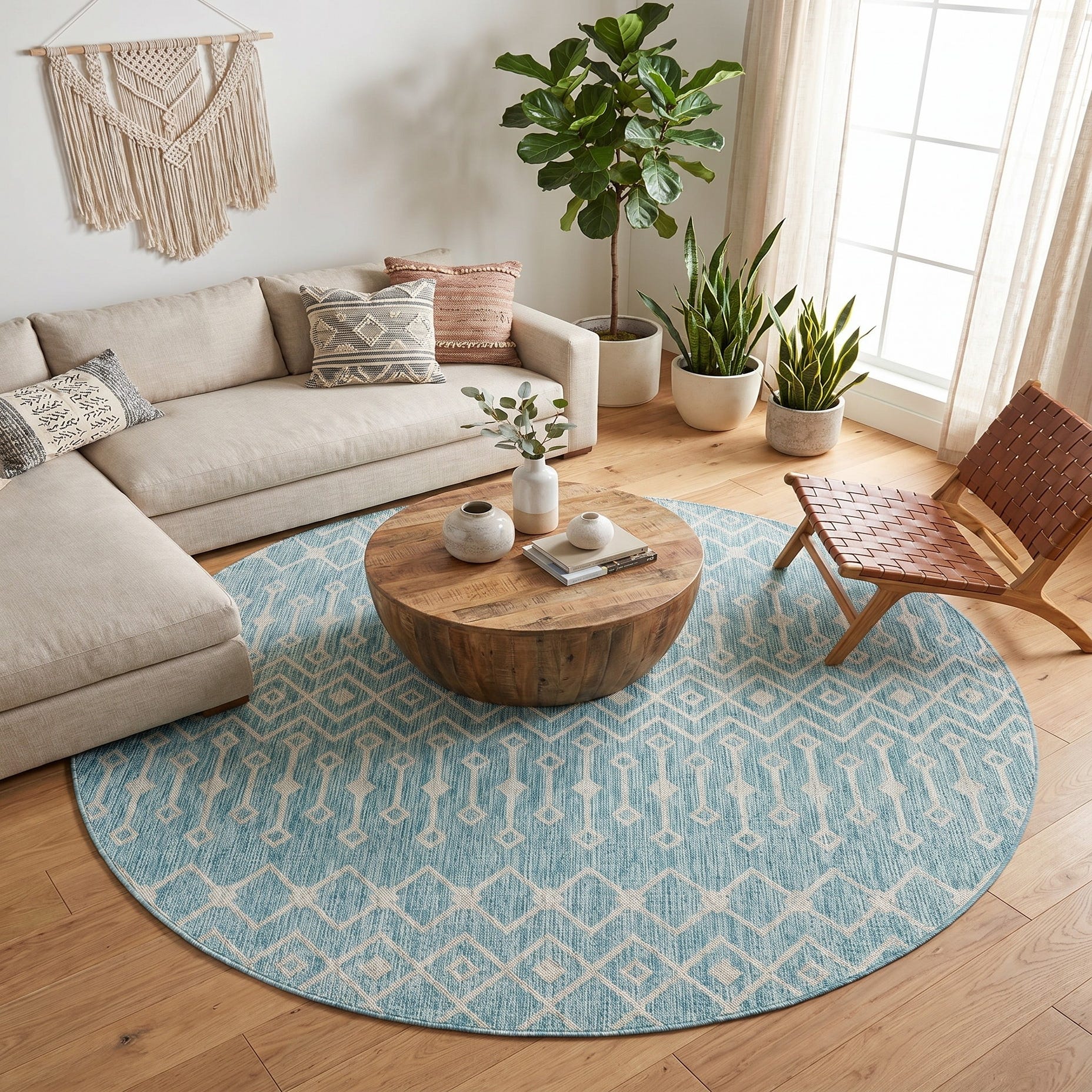 7' 10 x 7' 10 Easy-Clean Trellis Indoor / Outdoor Round Rug