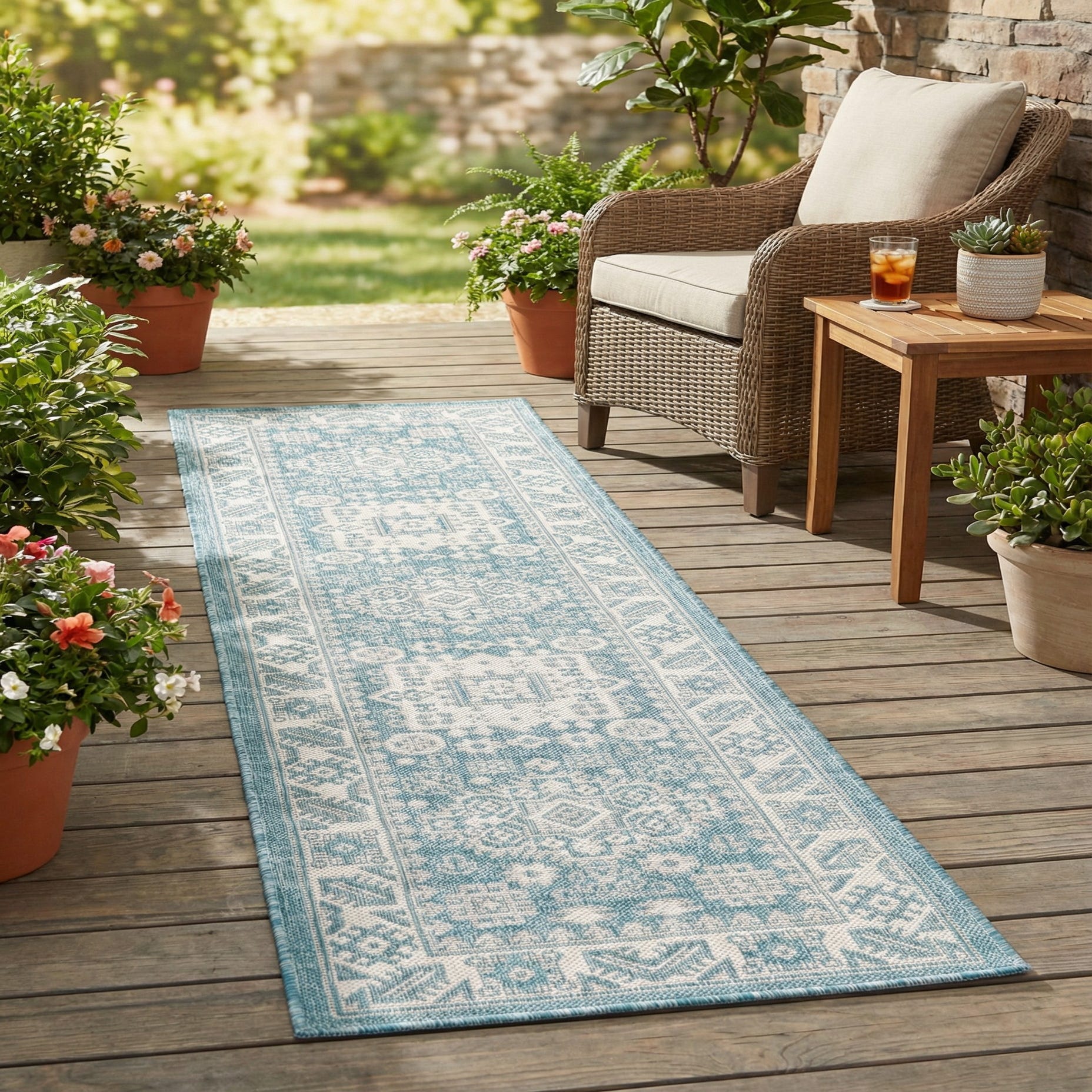 2' x 8' Washable Aztec Indoor / Outdoor Runner Rug