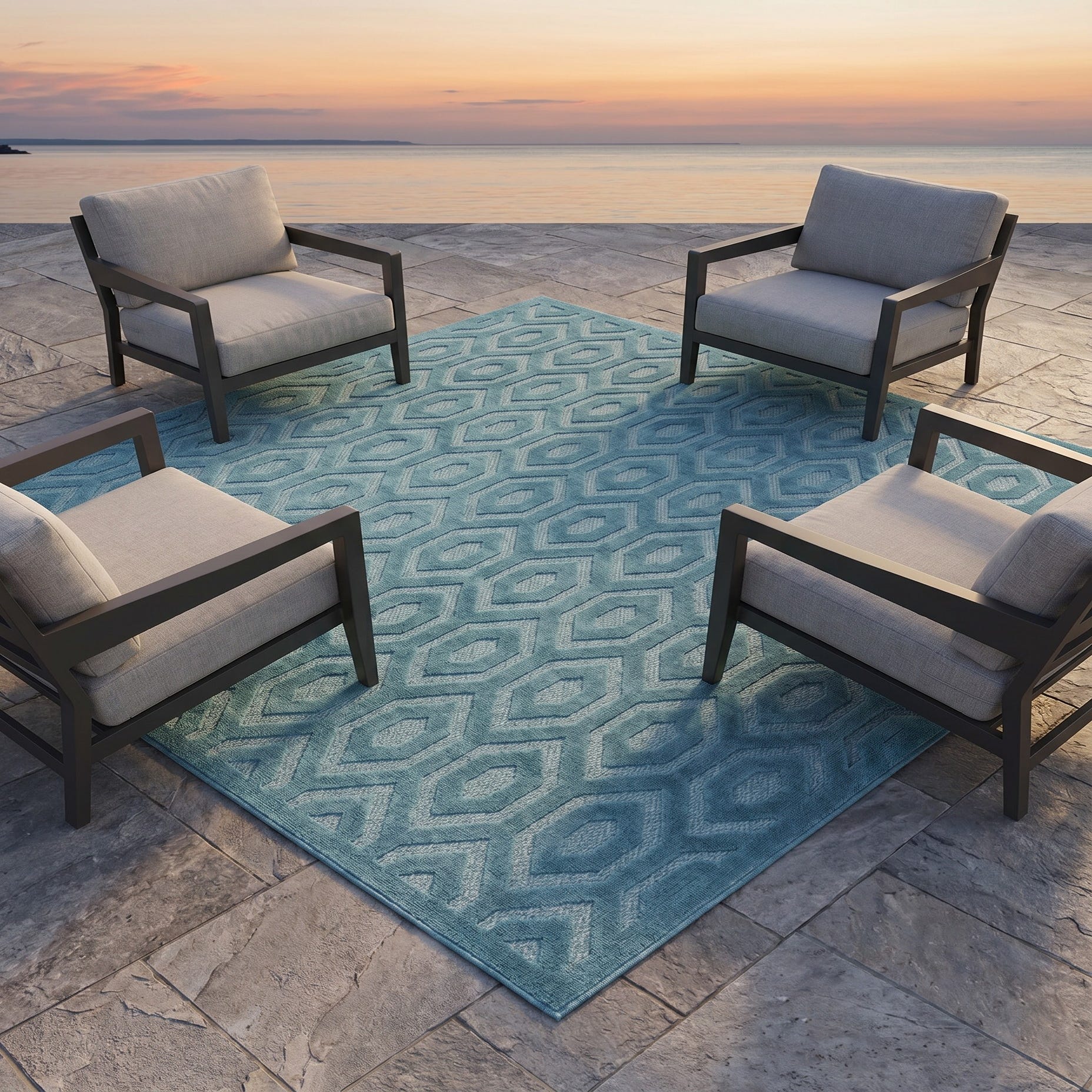 7' 10 x 7' 10 Easy-Clean Trellis Textured Indoor / Outdoor Square Rug