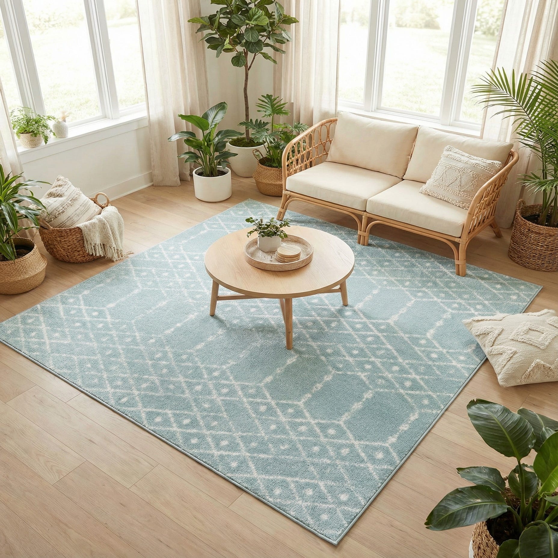 Primary color is Aqua. Colors in this rug include: Aqua, Ivory.