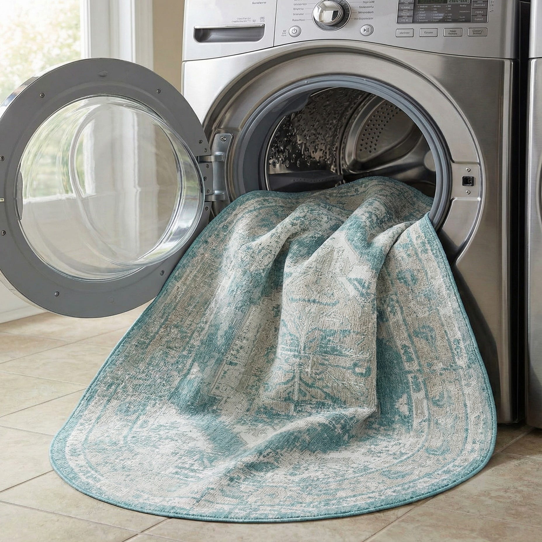 Detail image of 7' 10 x 10'  Washable Traditional Indoor / Outdoor Oval Rug