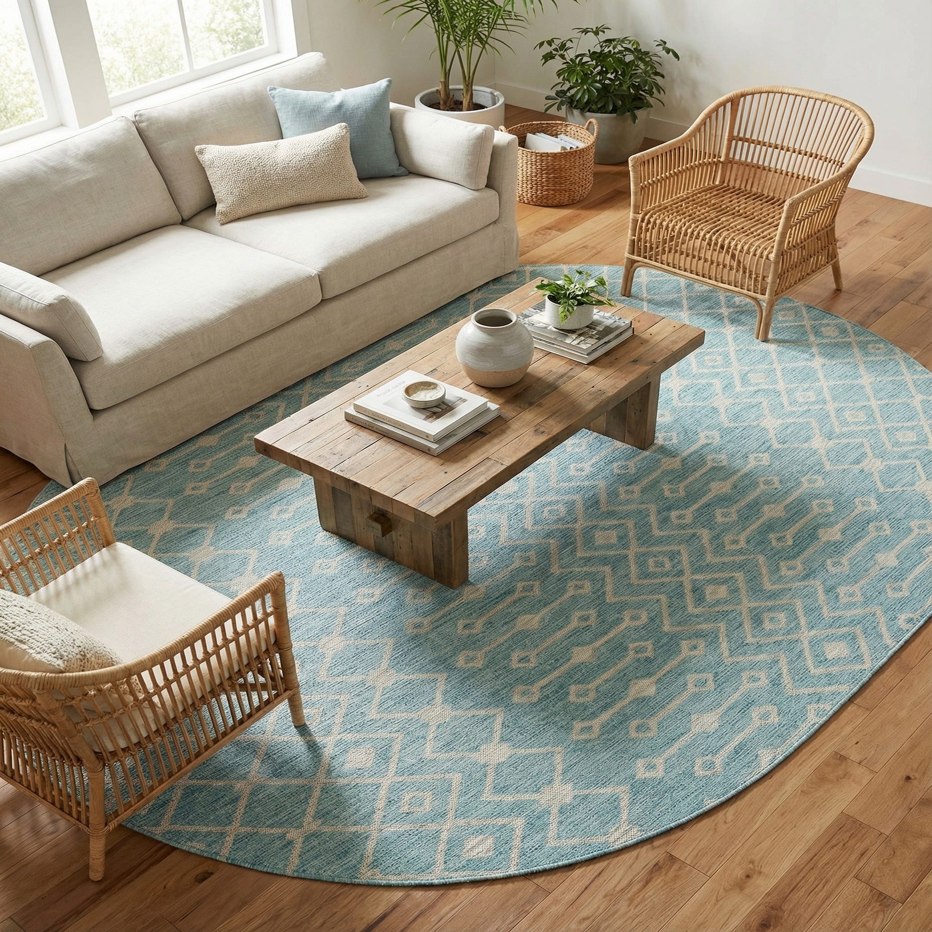 7' 10 x 10' Washable Trellis Indoor / Outdoor Oval Rug