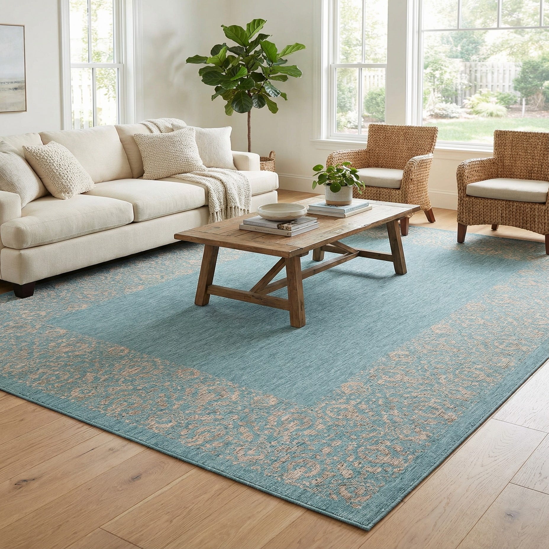 7' 10 x 11' Washable Border Indoor / Outdoor Rug