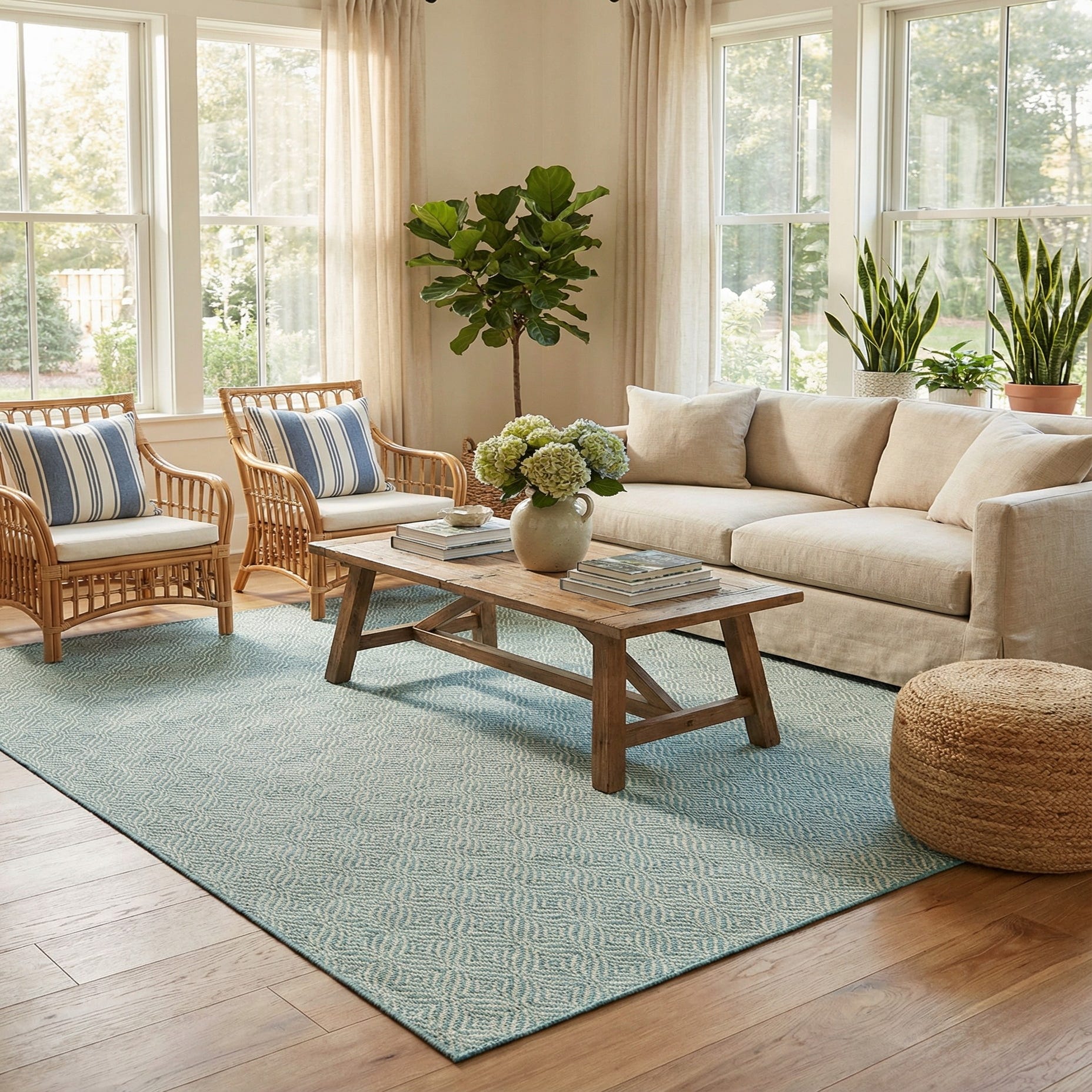 Primary color is Aqua. Colors in this rug include: Aqua, Ivory.