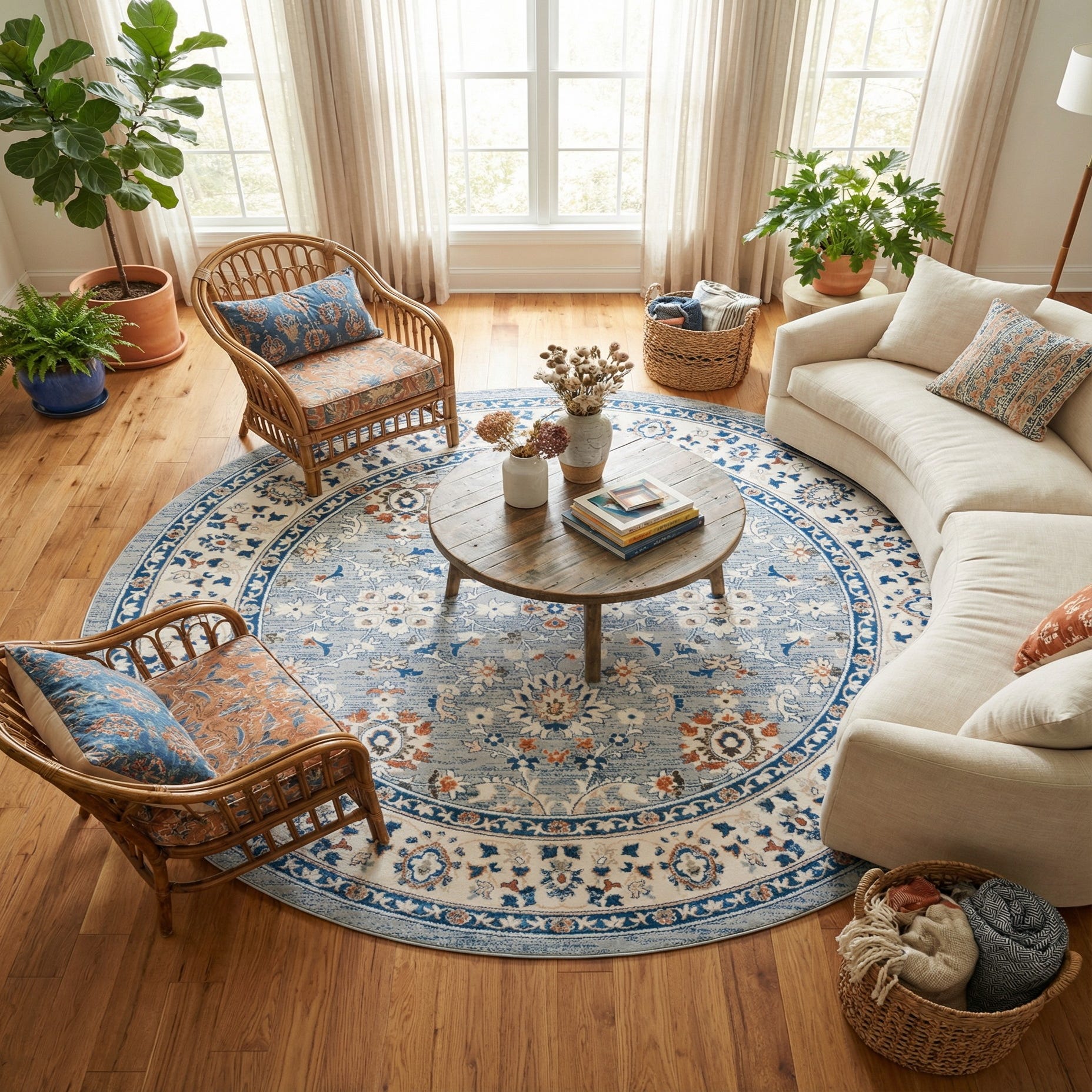 Primary color is Aqua Blue. Colors in this rug include: Aqua Blue, Beige, Blue, Brown, Terracotta.