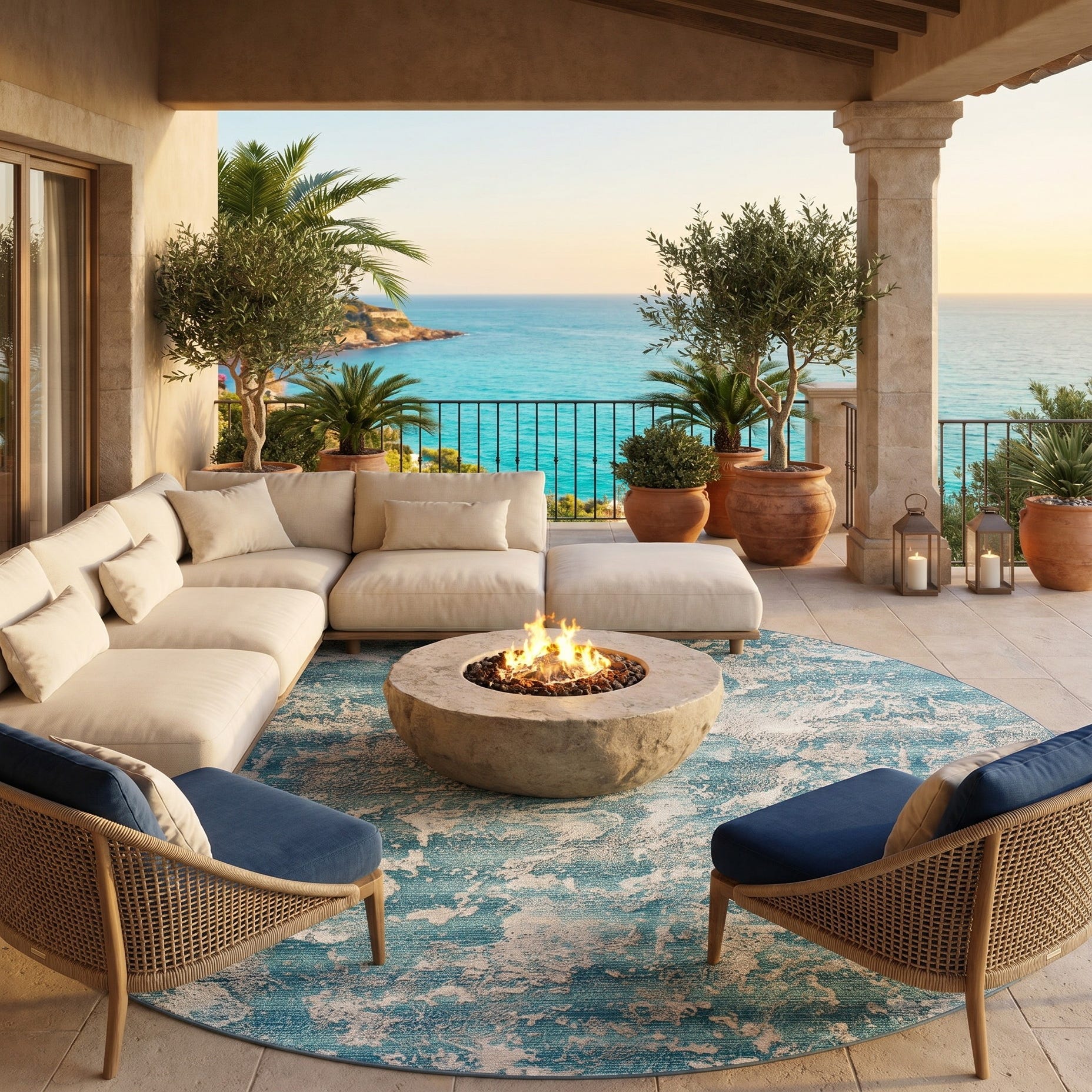 10' x 10' Easy-Clean Modern Indoor / Outdoor Round Rug