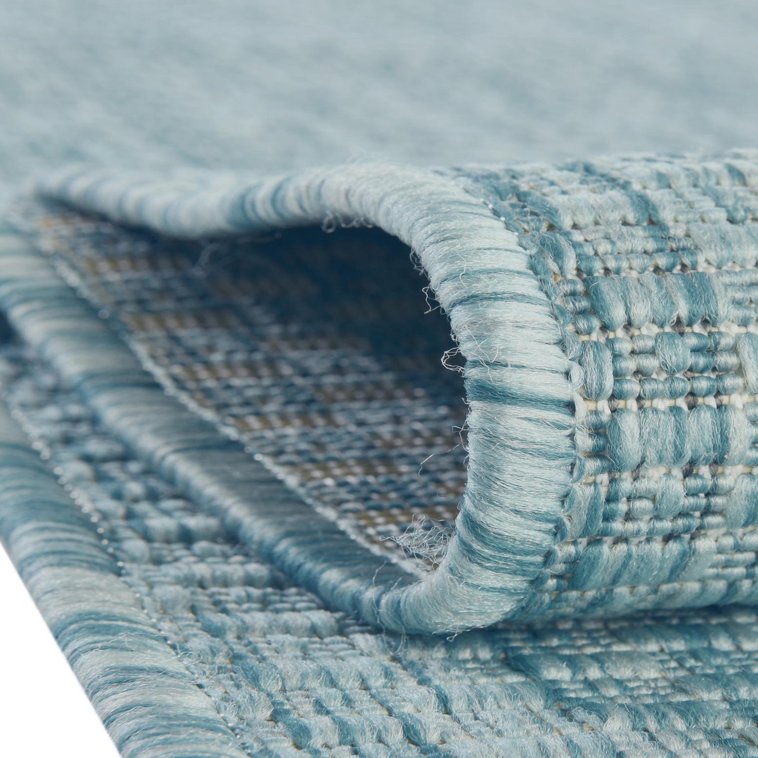 Primary color is Aquamarine. Colors in this rug include: Aquamarine, Beige.