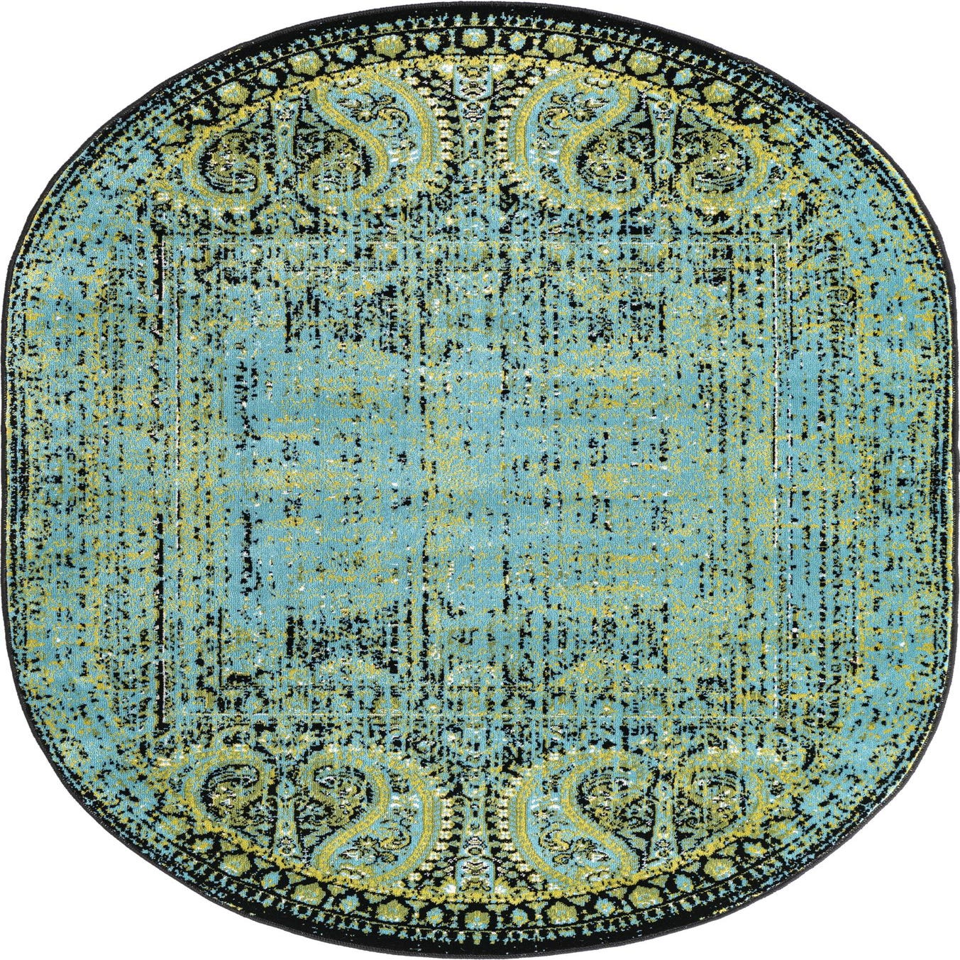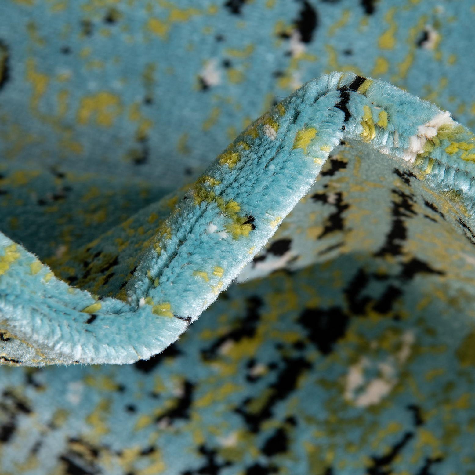 Primary color is Aquamarine. Colors in this rug include: Aquamarine, Black, Green, Light Green, Ivory.