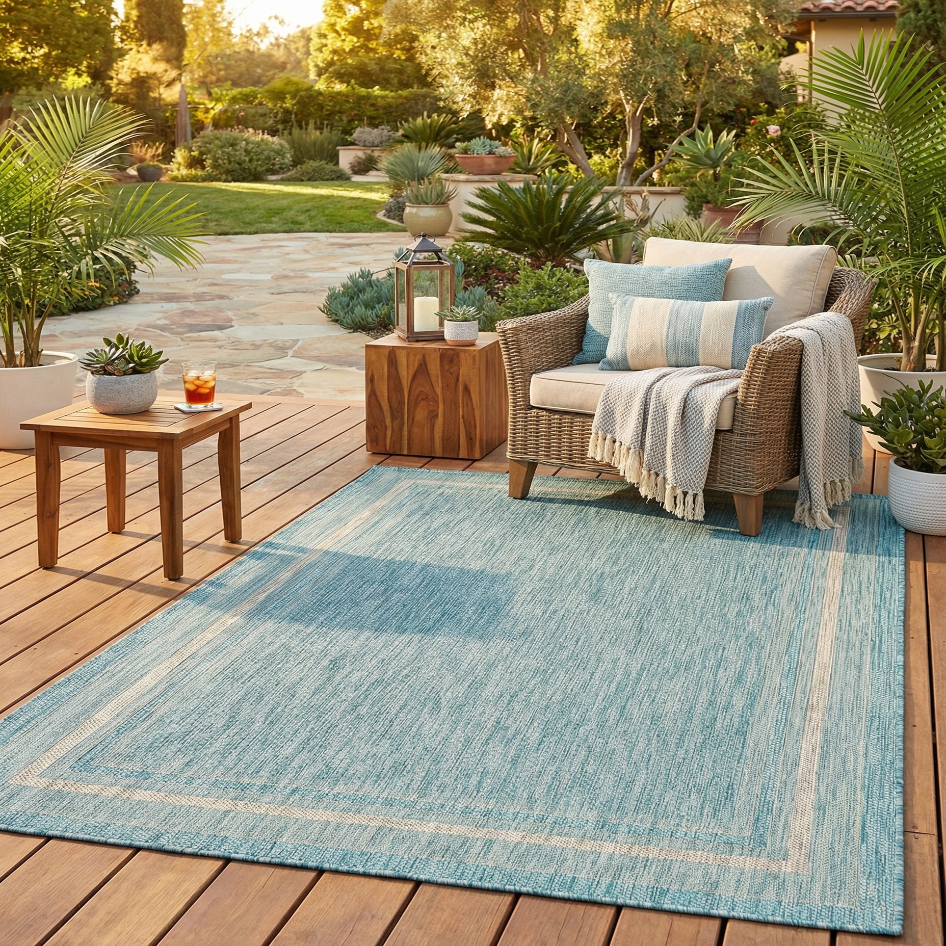 5' 3 x 8' Washable Border Indoor / Outdoor Rug