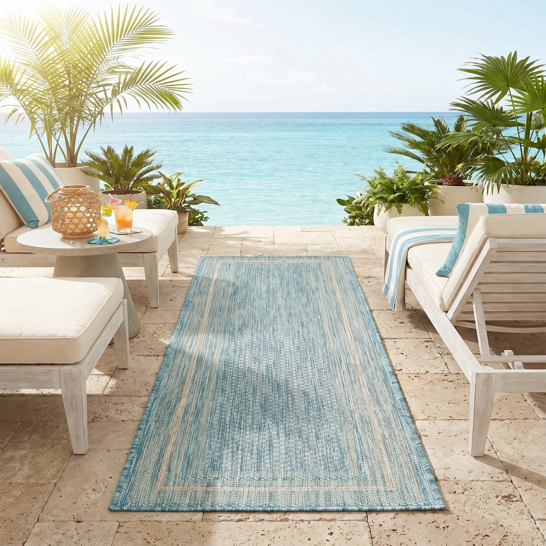 I LOVE this rug. It’s gorgeous. It fits my space perfectly and covers the imperfections of my patio that are waiting to be repaired. I’ve received so many compliments. My outdoor space has never been cozier and more for inviting. The best part is how quickly it dries after a rain. I am thoroughly impressed by the quality and craftsmanship of this rug.